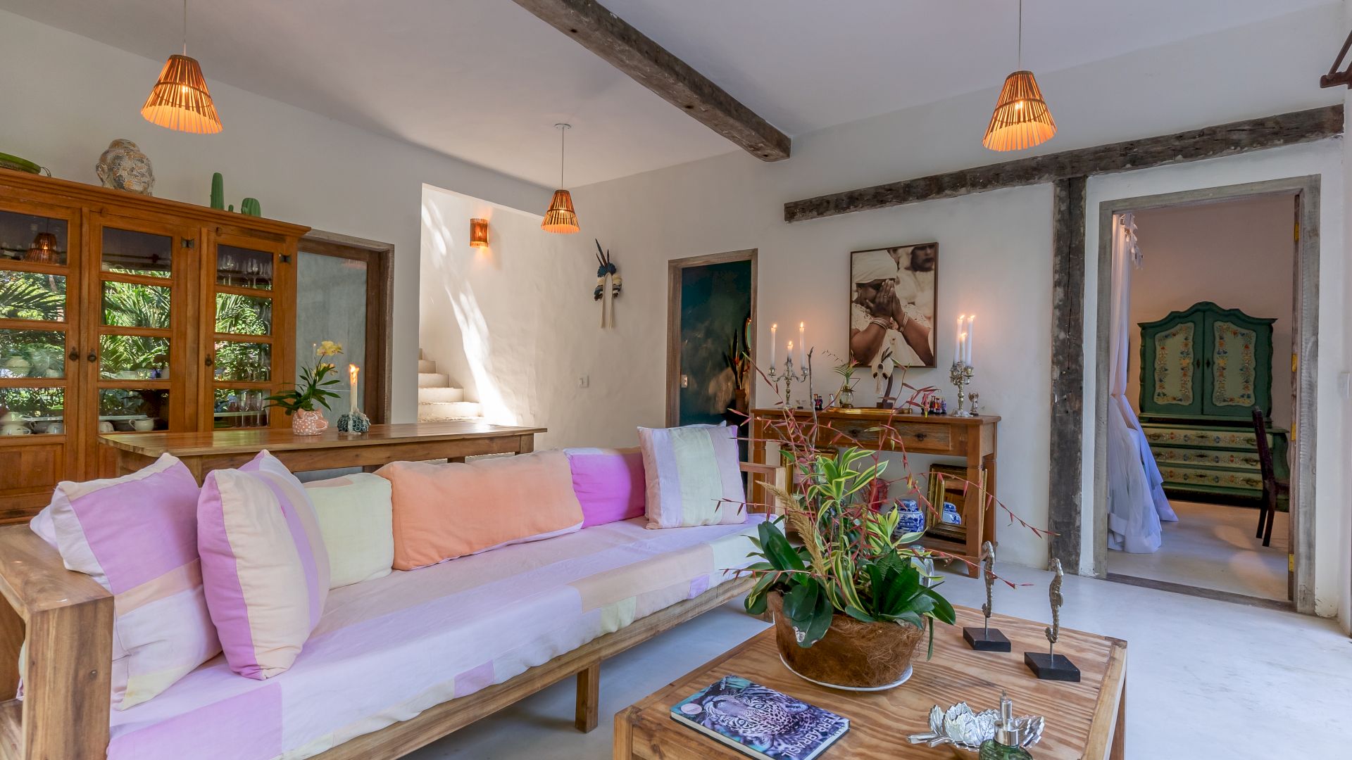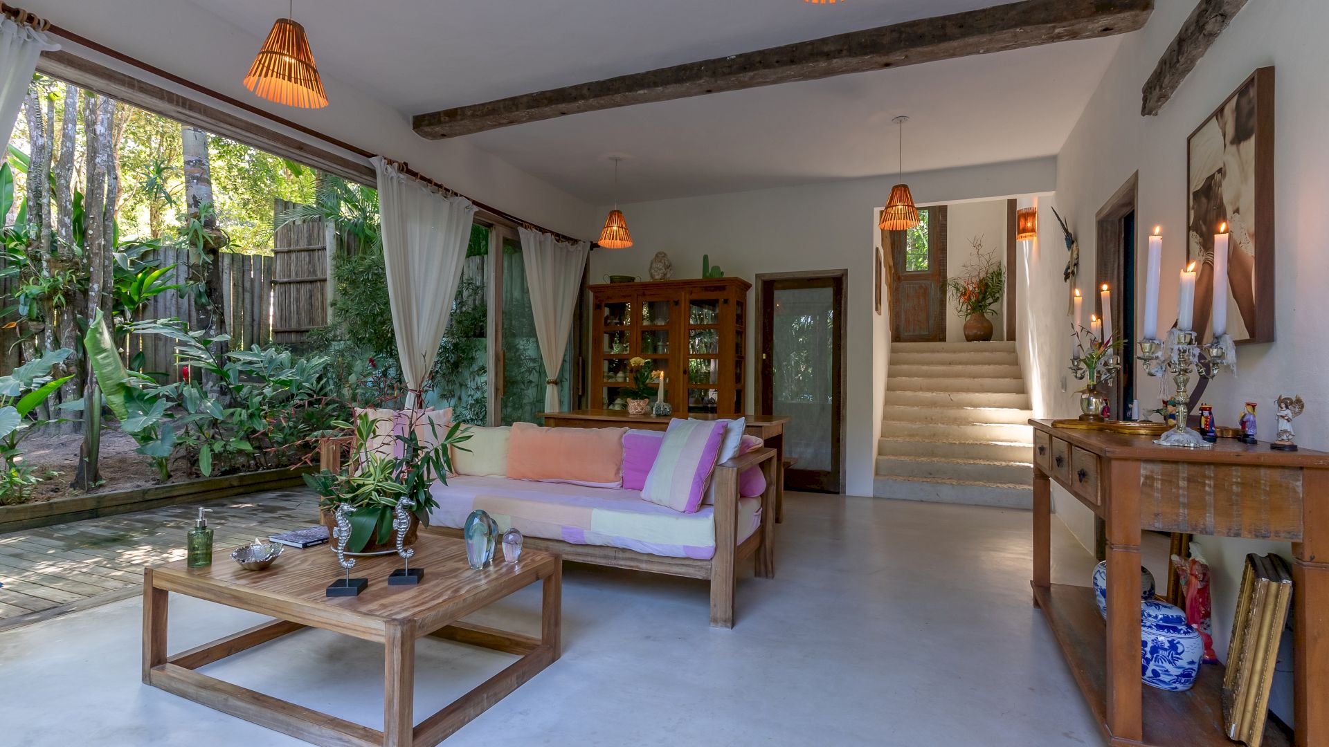 A casa foi projetada seguindo o estilo baiano, com uma lindíssima decoração de objetos locais. Todos os cômodos são amplos deixando a casa bem ventilada e iluminada. O enxoval de cama e cozinha é completíssimo.