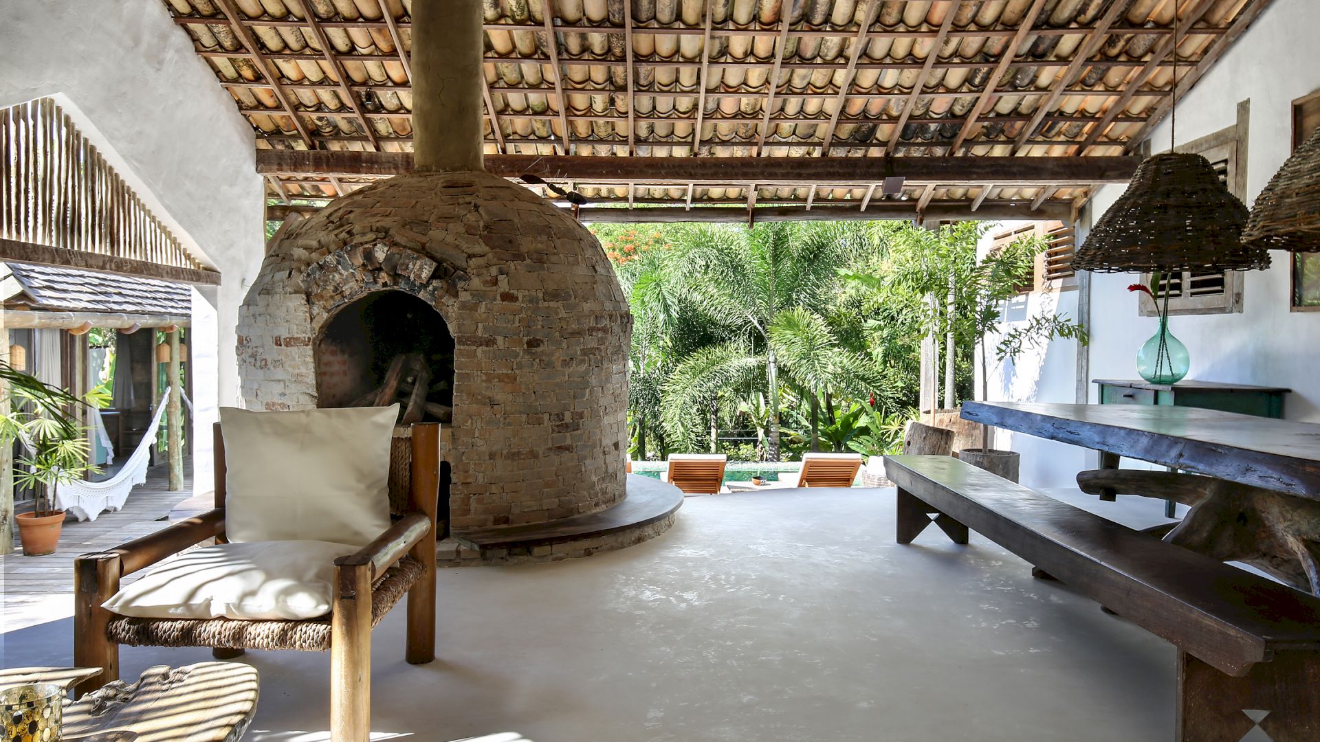 - charmosa sala aberta com mesa para 10 pessoas e churrasqueira.