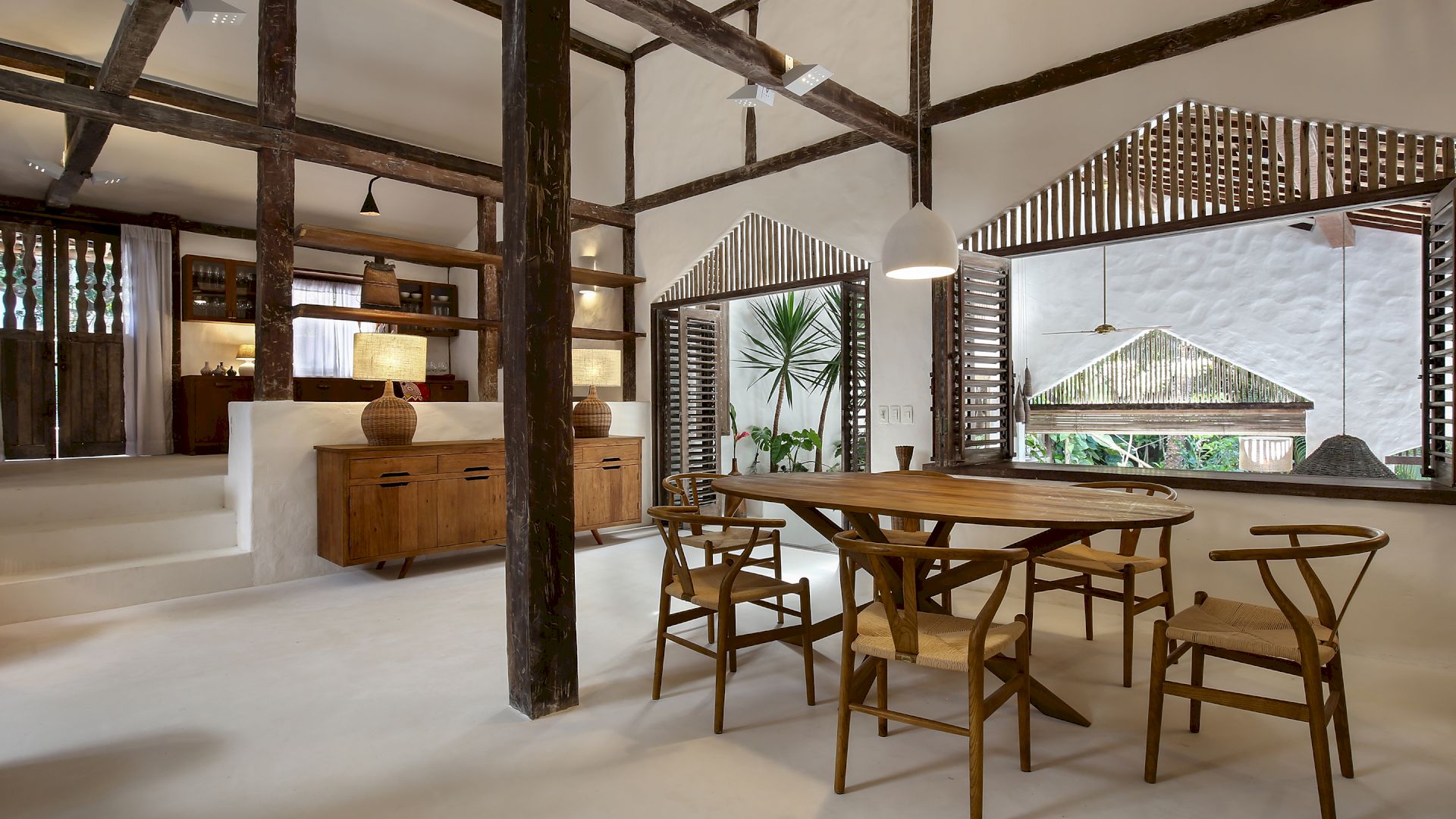 - Sala de jantar com mesa e aparelhos de jantar para 10 pessoas