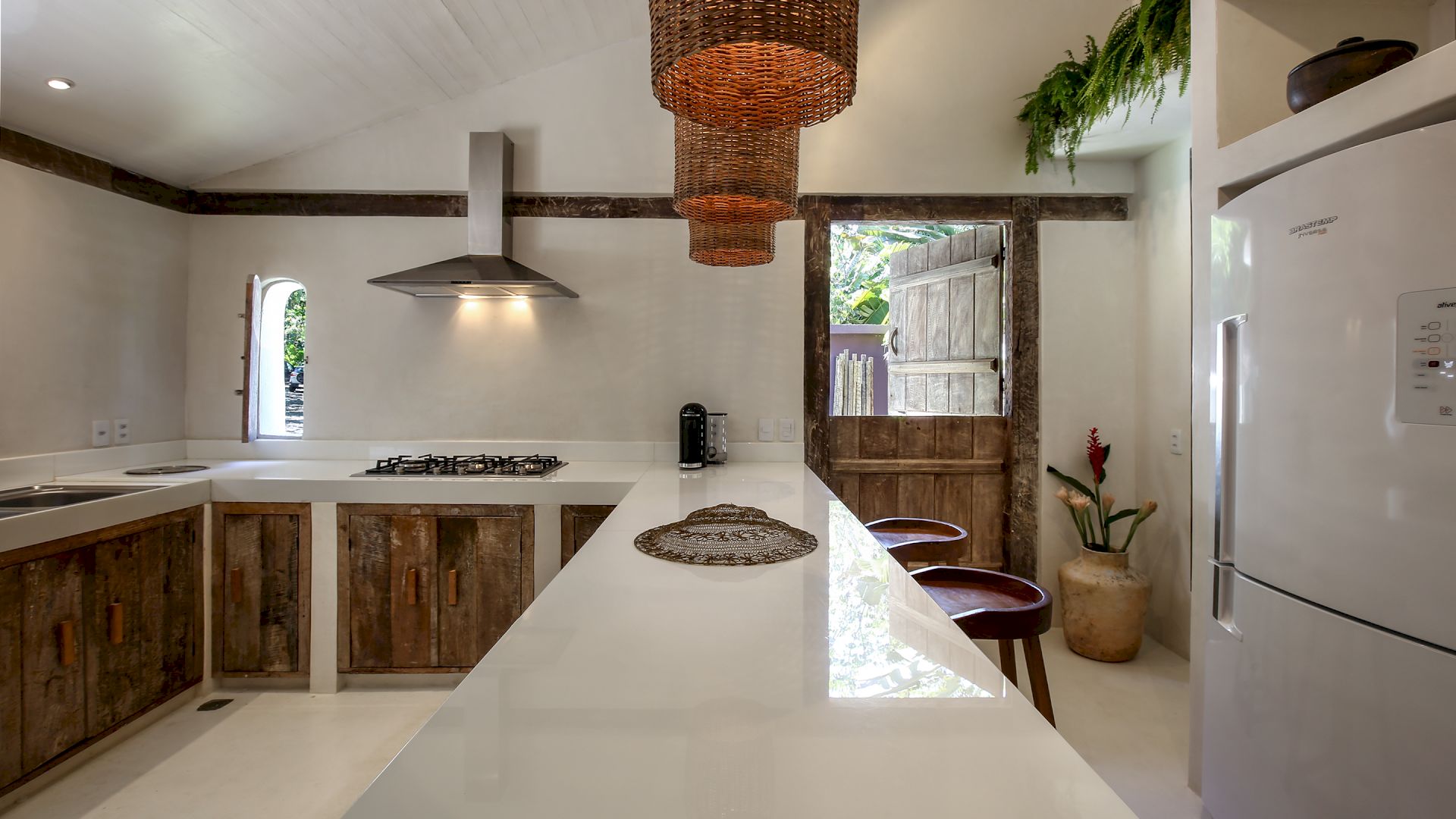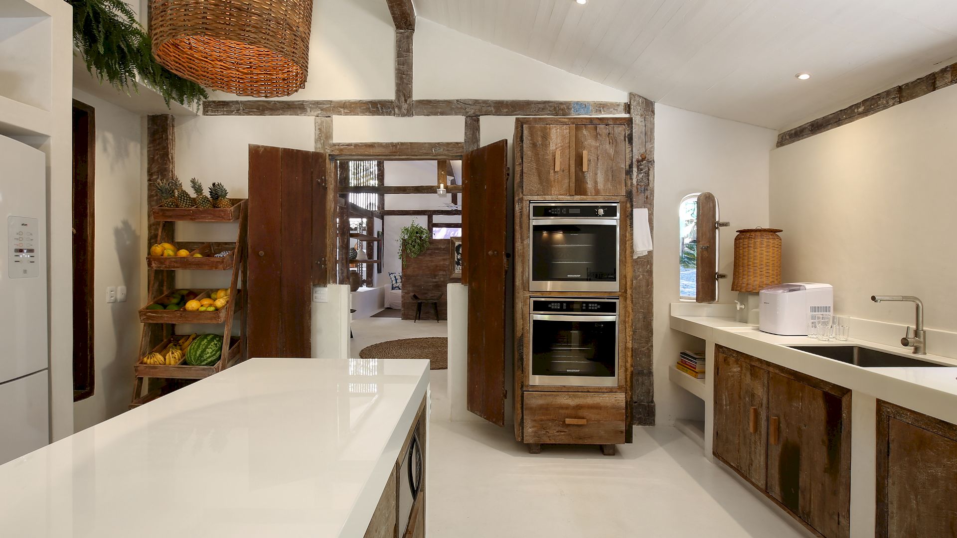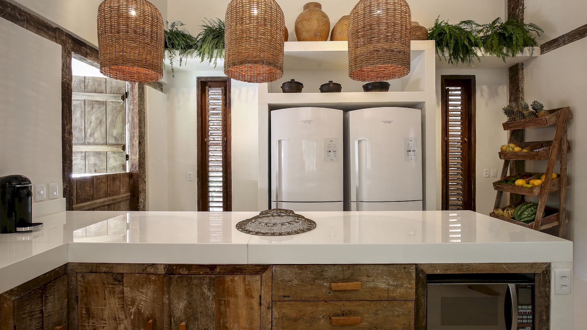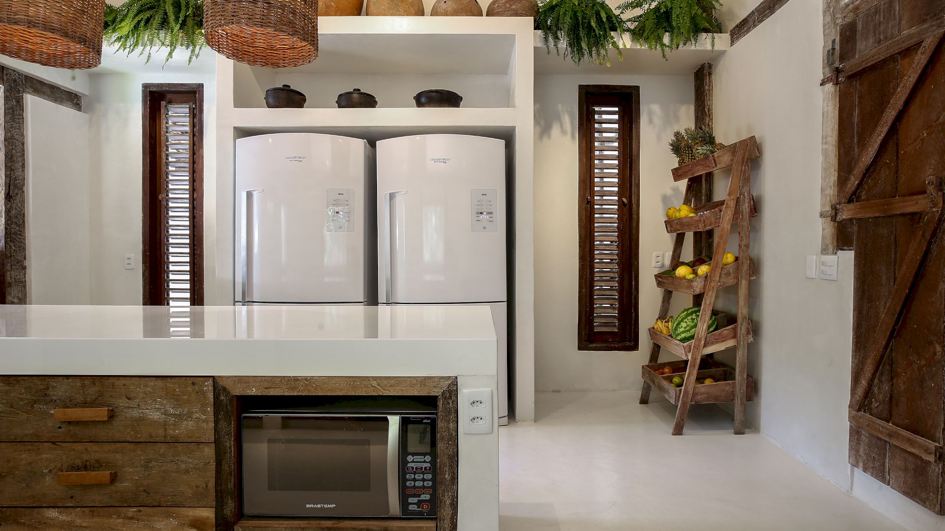 - Cozinha equipada com 2 geladeiras, 1 freezer, 1 fogão, 5 bocas, 2 fornos, microondas, eletrodomésticos diversos, filtro de água e máquina Nespresso.