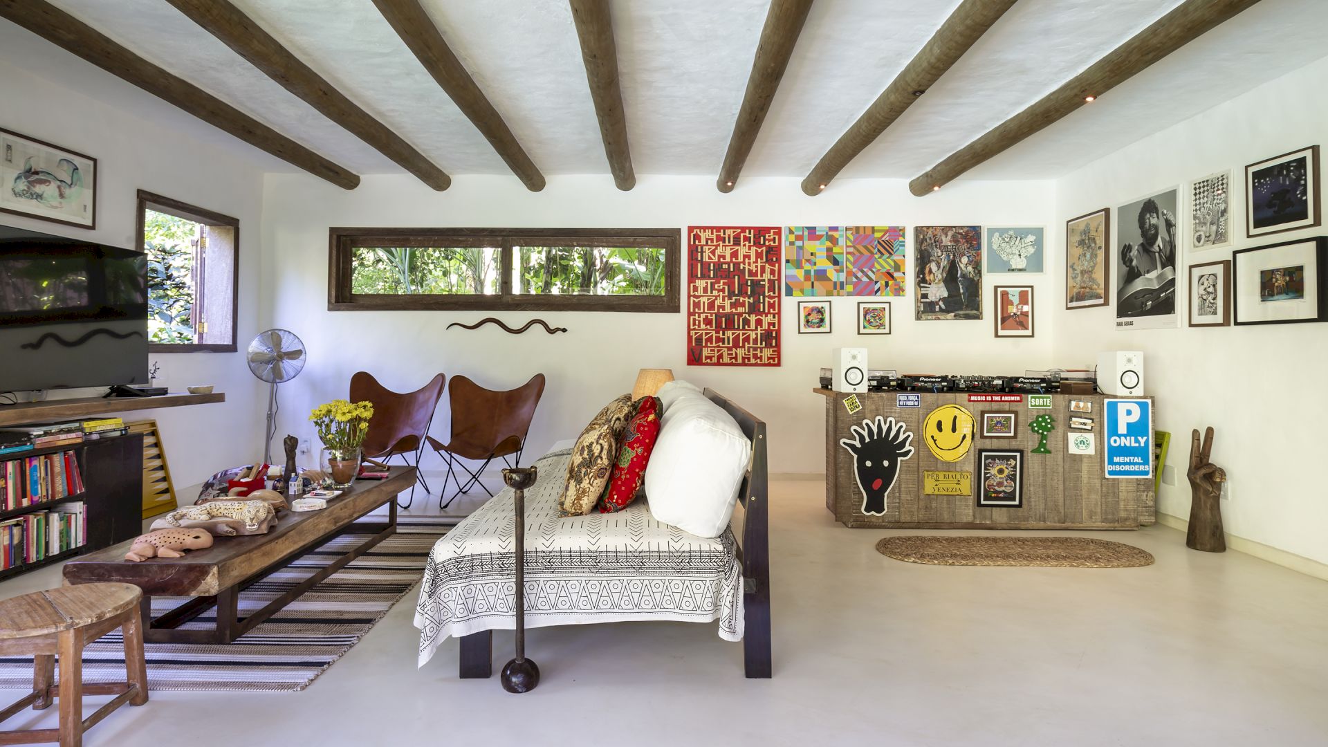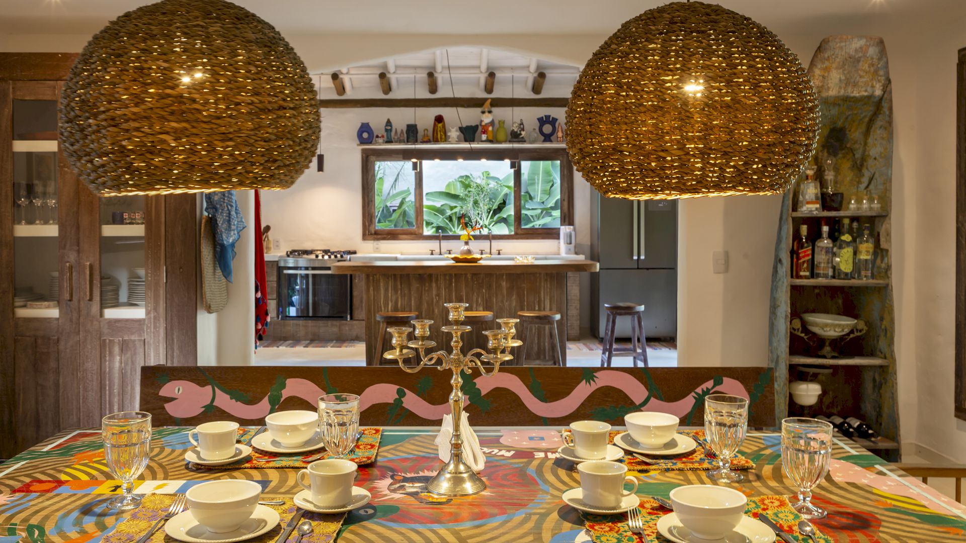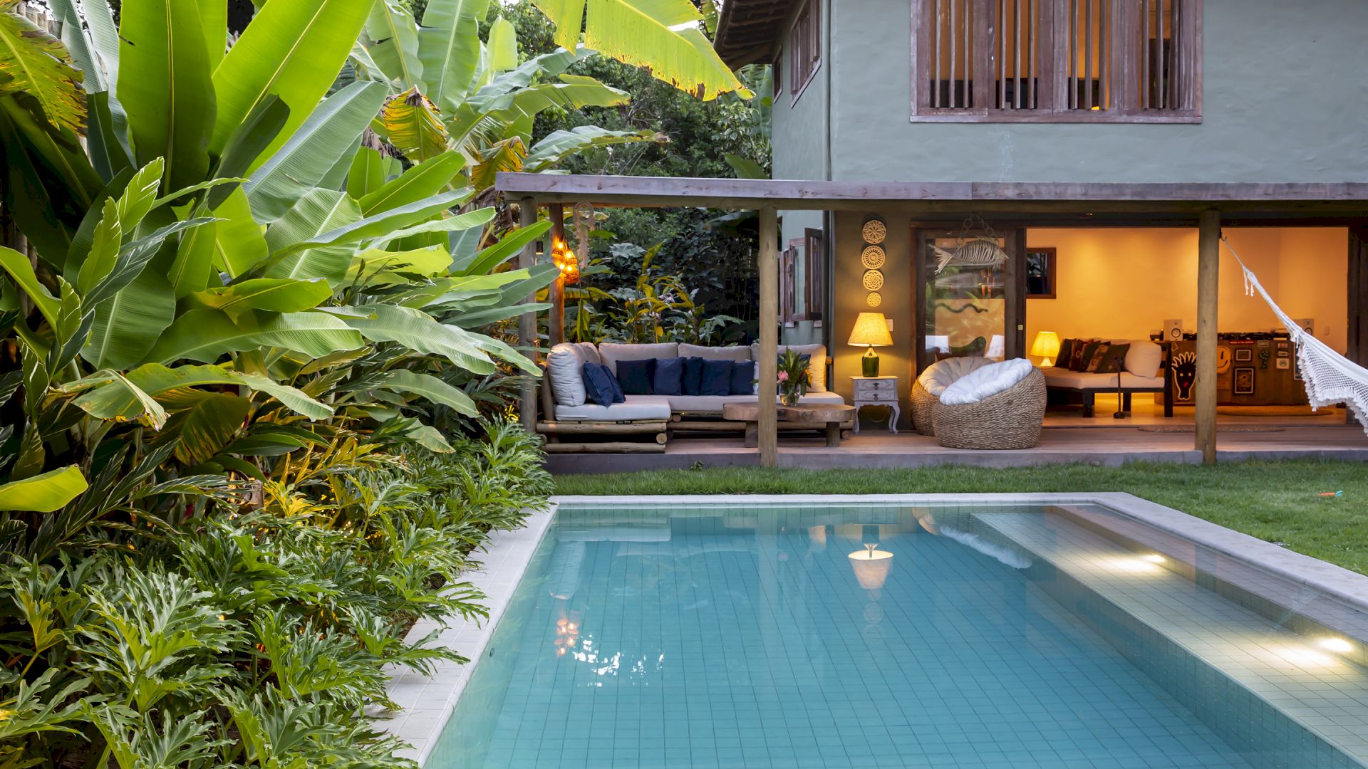 A vila conta com seis banheiros, um poço artesiano, duas salas de estar com Smart TVs e duas salas de jantar. No exterior, há um chuveirão e espreguiçadeiras no jardim. As roupas de cama, mesa e banho estão incluídas, assim como secadores de cabelo. Importante ressaltar que não são aceitos pets, caixas de som ou qualquer tipo de festa.