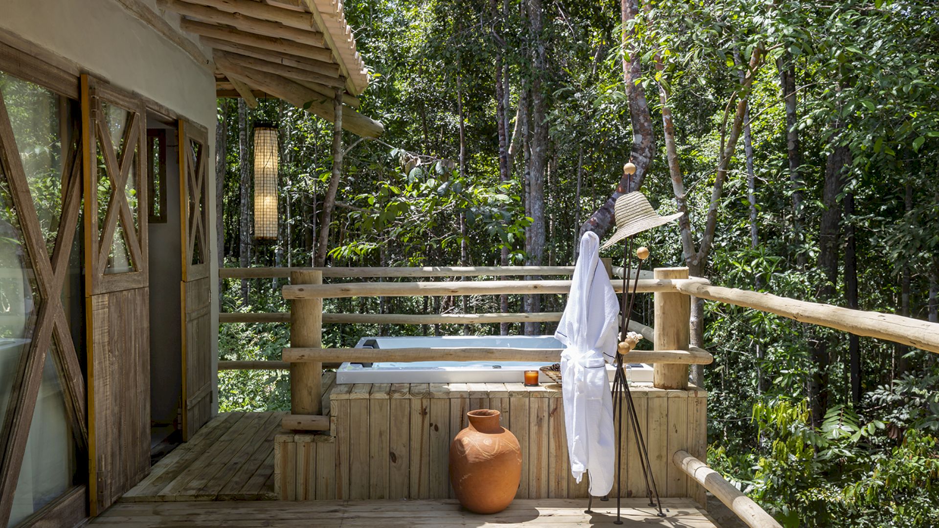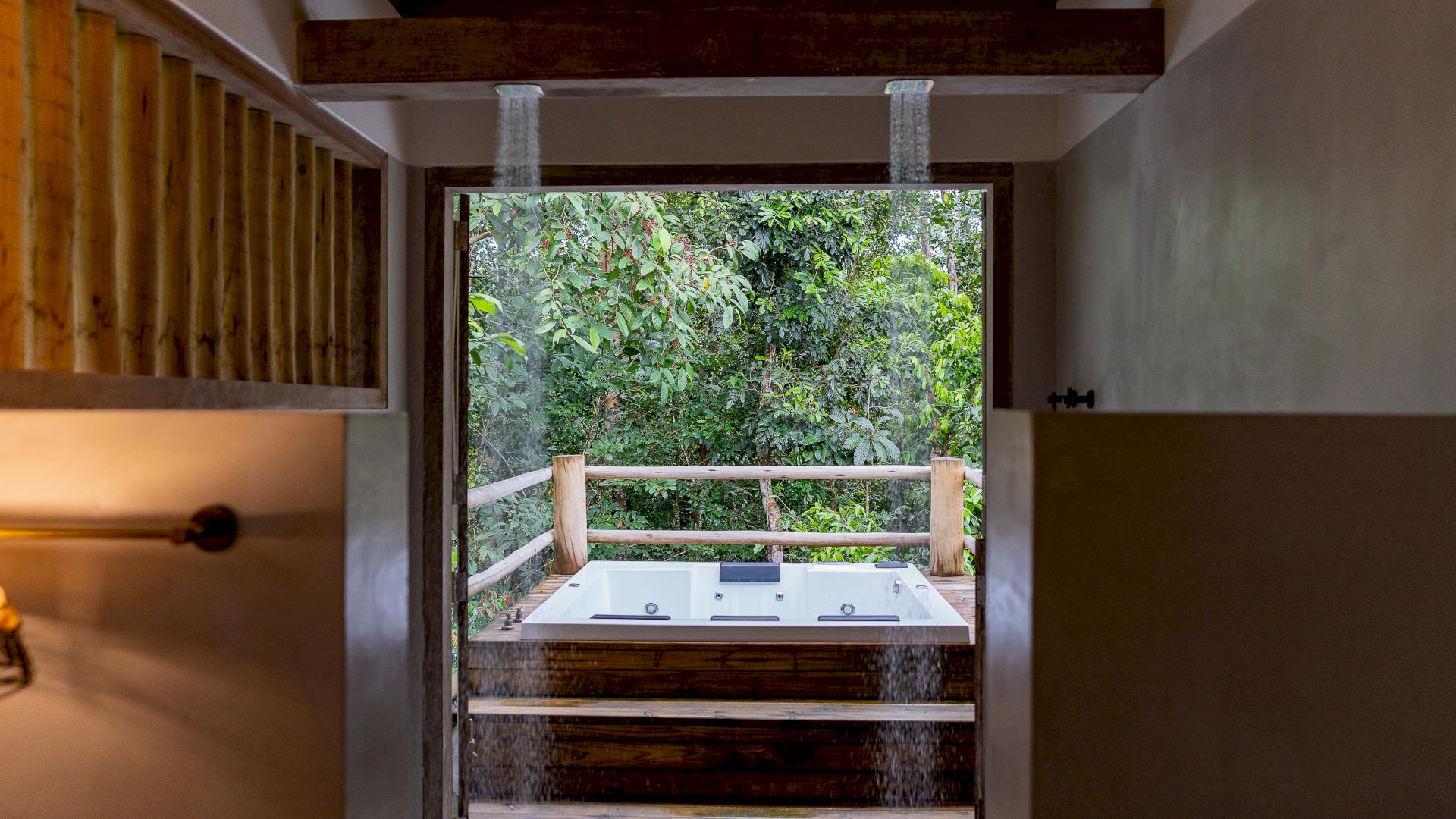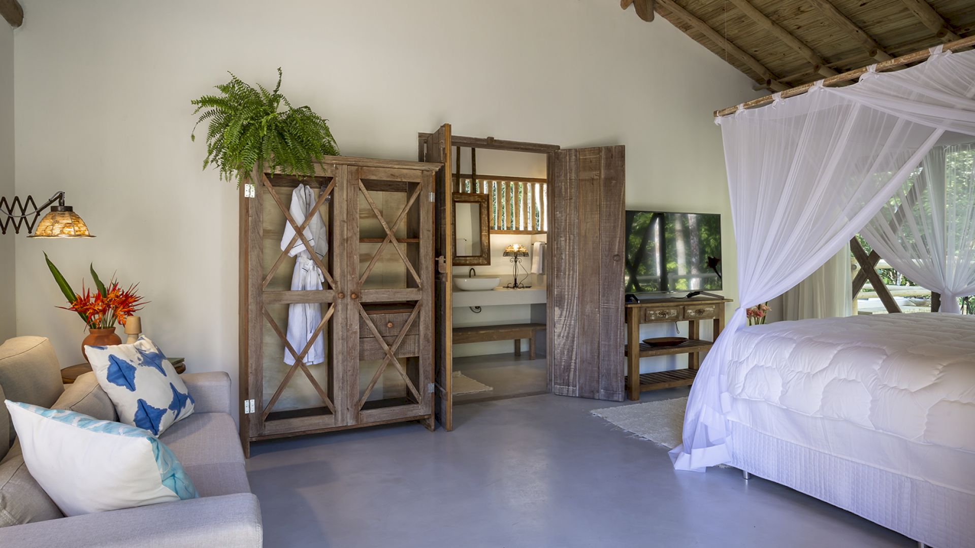 Suíte externa: Suíte master com hidromassagem , ar-condicionado cama queen size com mosquiteiro , sofá camal de casal.