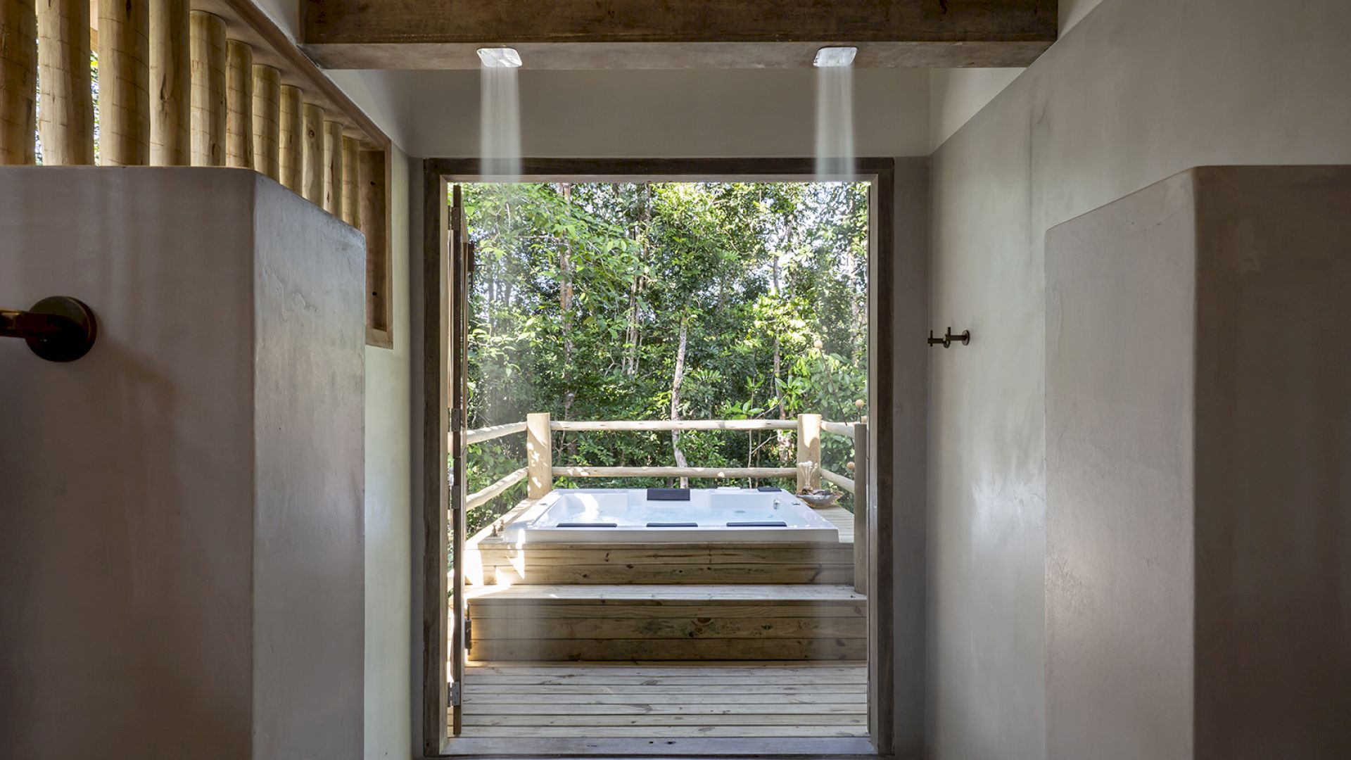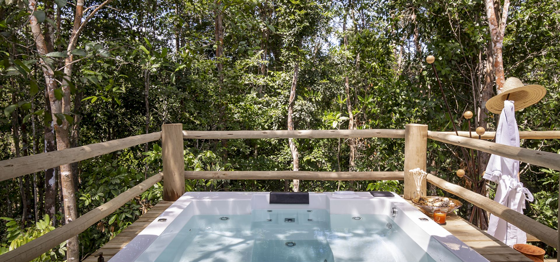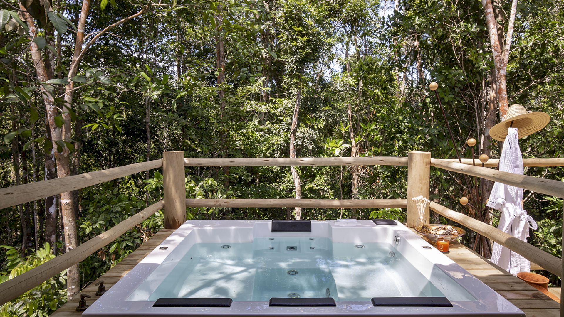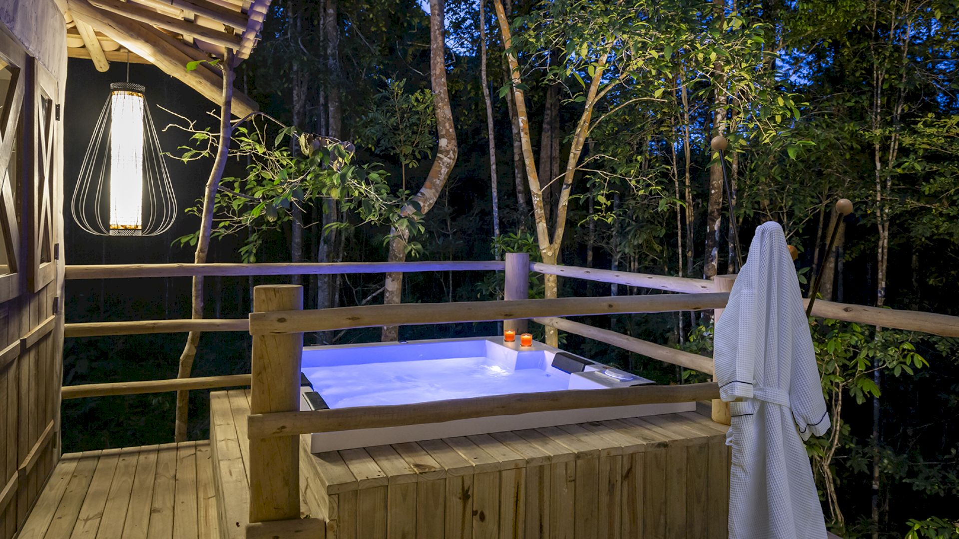 Suíte externa: Suíte master com hidromassagem , ar-condicionado cama queen size com mosquiteiro , sofá camal de casal.
