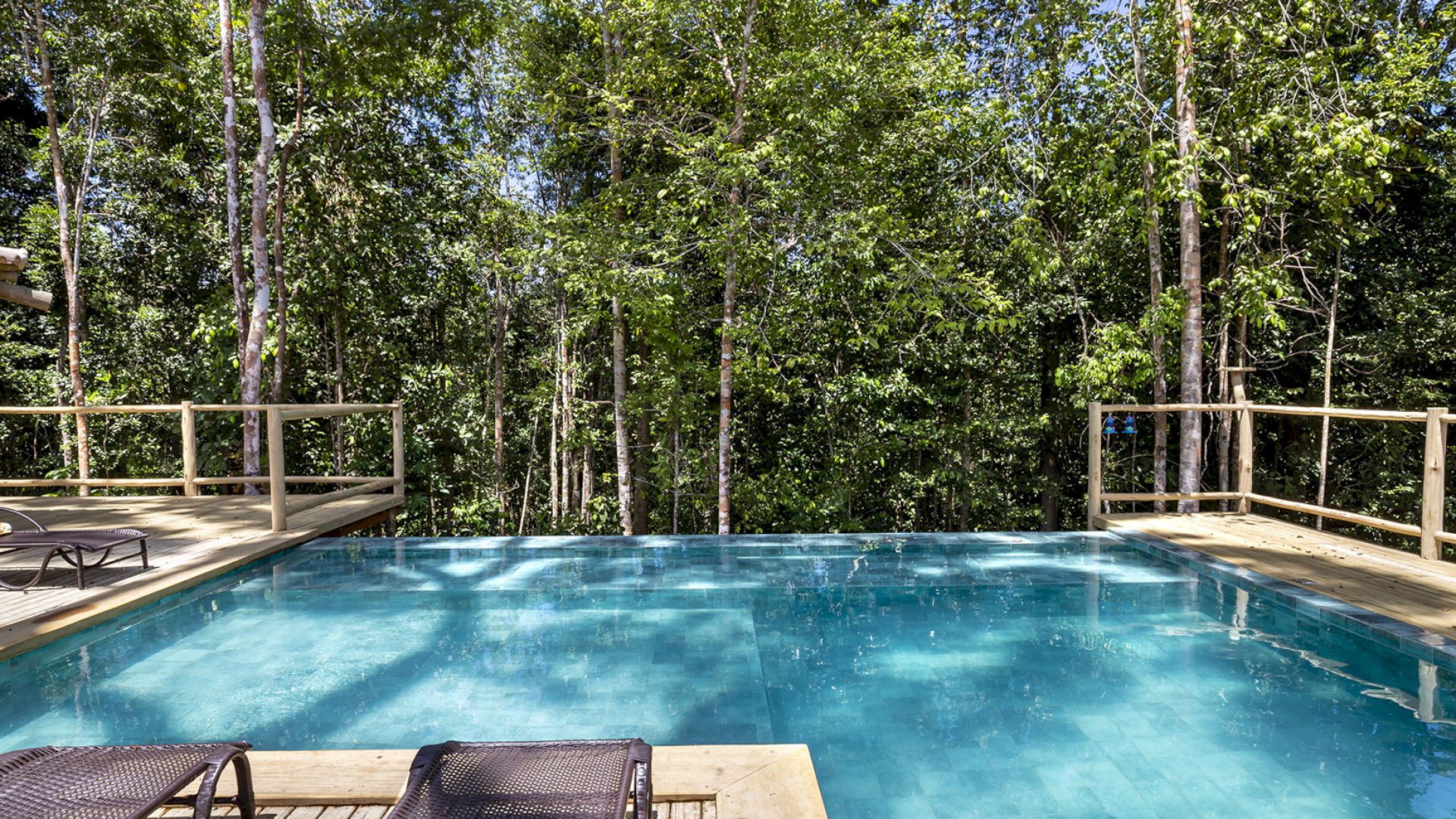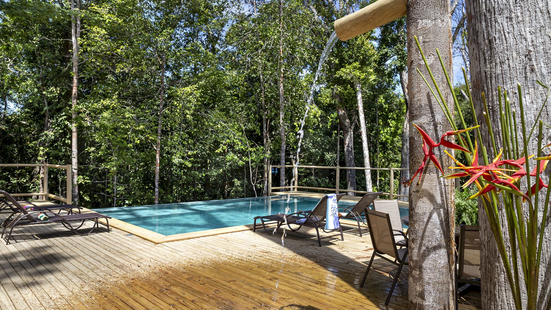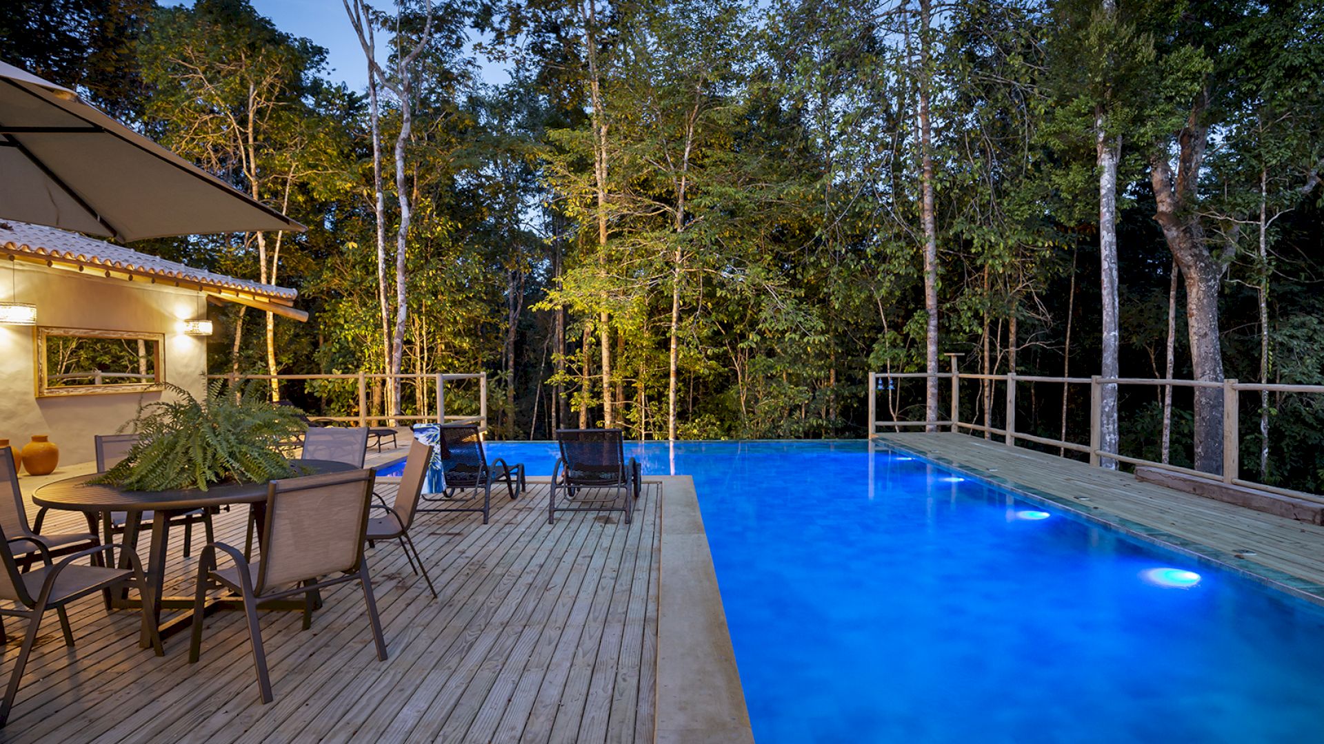 Suítes internas (4): Todas com ar-condicionado, cama queen size (que podem se transformar em camas de solteiro) e sofá cama de casal.