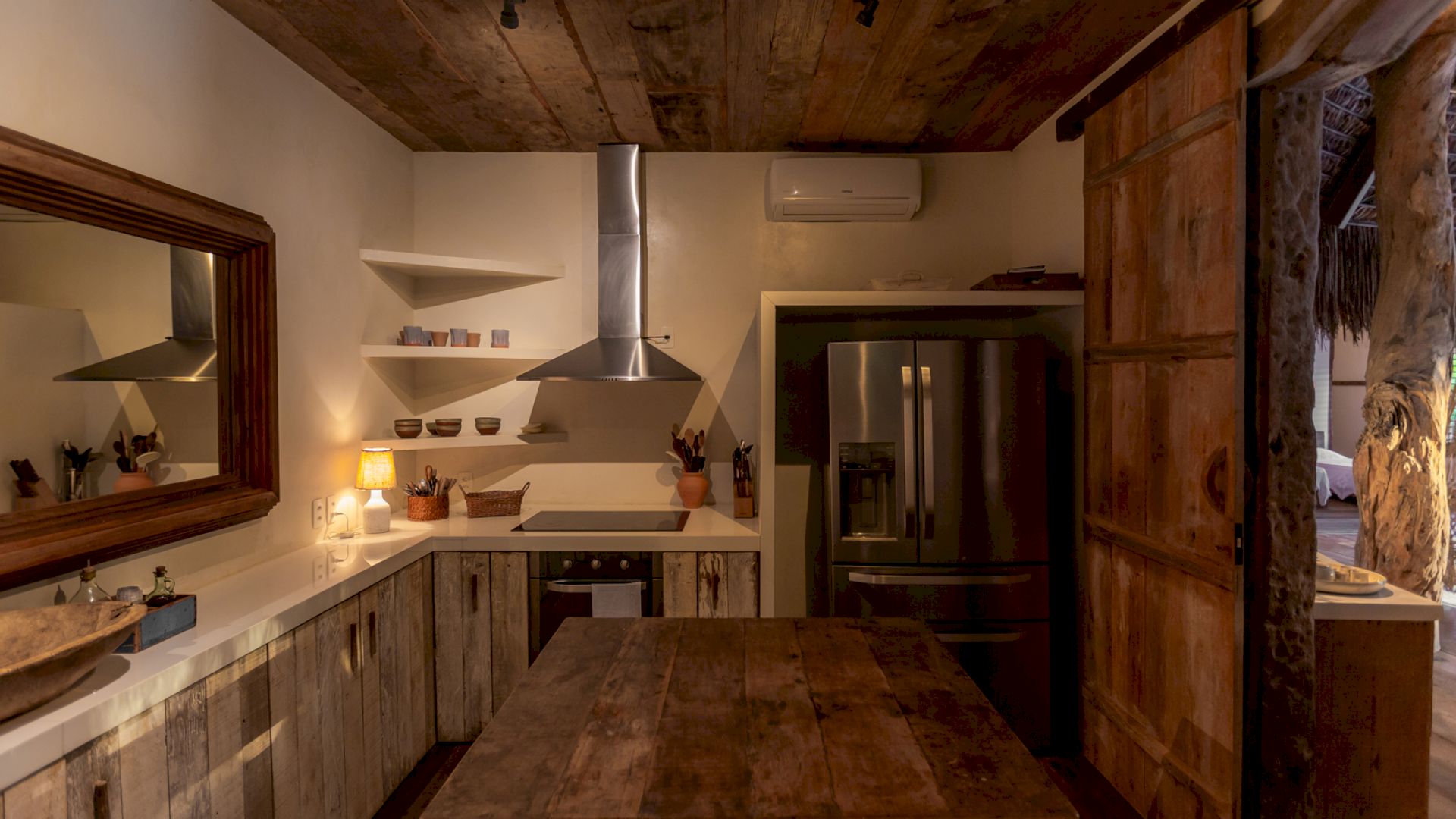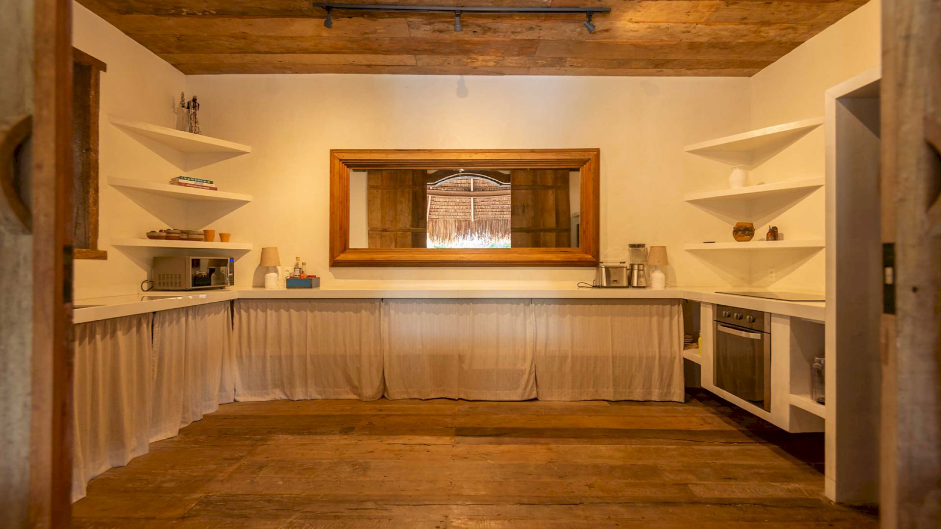 No centro da casa está a cozinha, considerada o coração do espaço, onde os hóspedes podem compartilhar momentos especiais enquanto desfrutam de um ambiente acolhedor e inspirador.