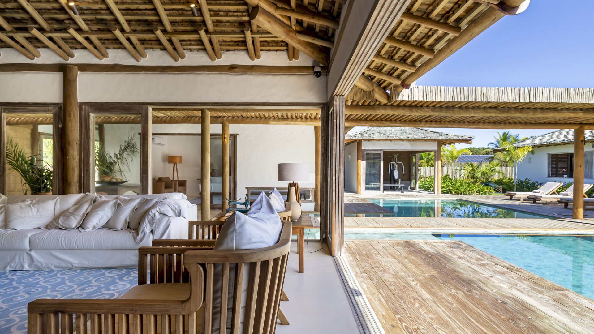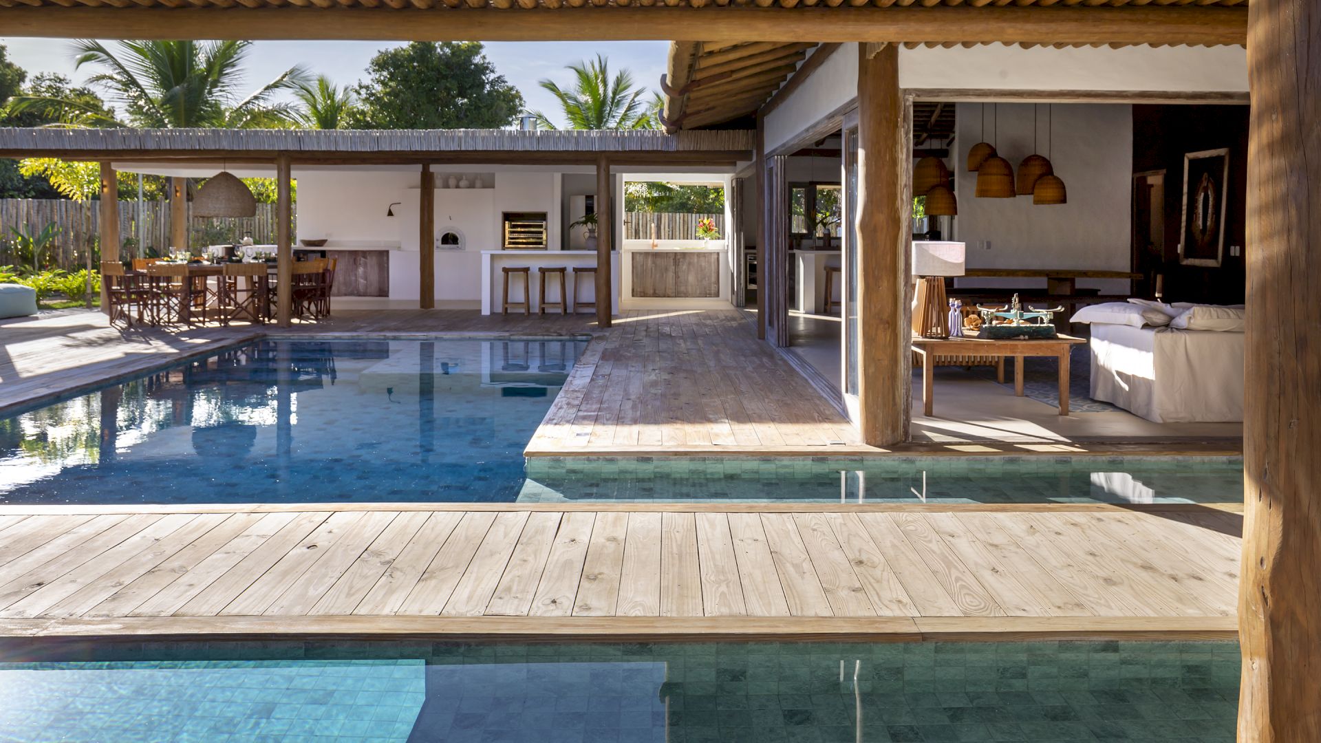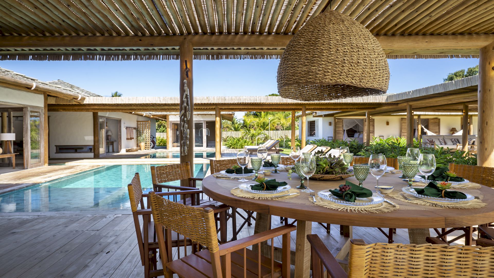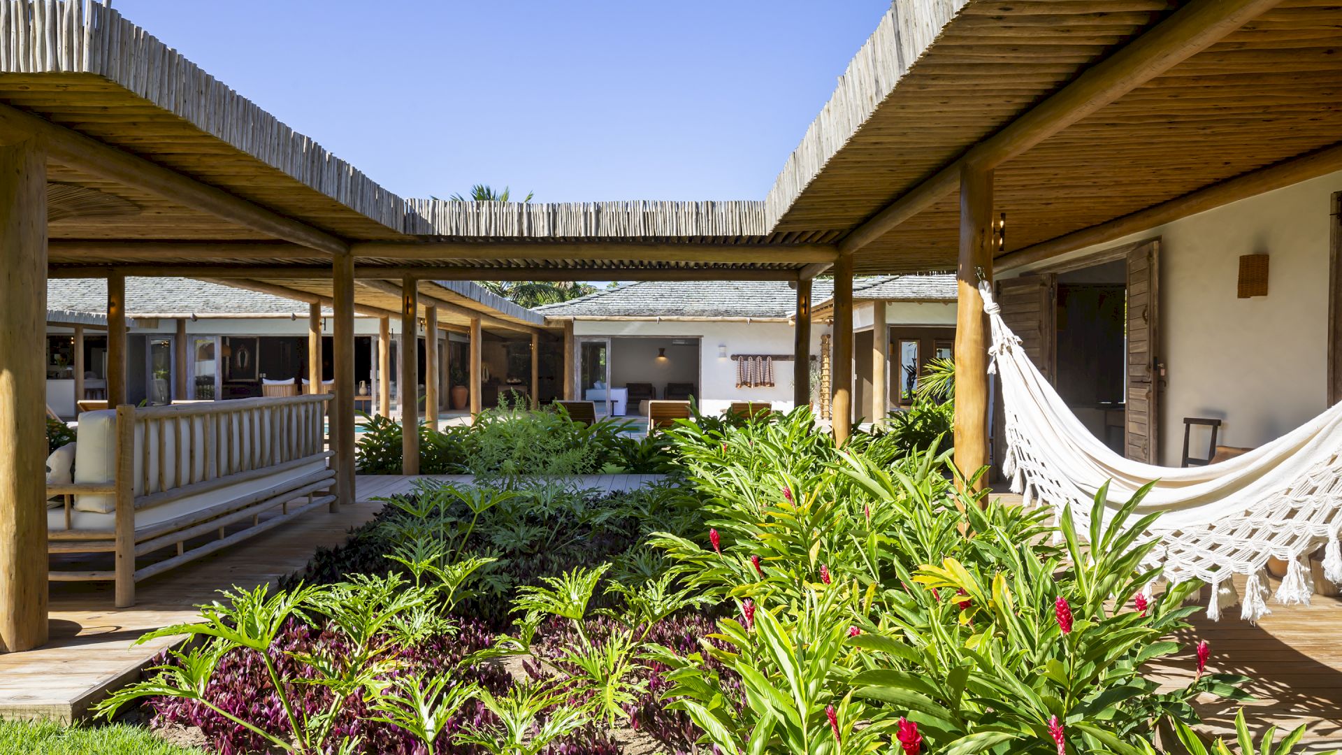 propriedade possui uma horta de especiarias, permitindo aos moradores e hóspedes desfrutar de ervas frescas colhidas diretamente do jardim. A piscina da casa é um verdadeiro destaque, equipada com hidromassagem para uma experiência de luxo. E para os esportistas, o condomínio oferece quadras de tênis e beach tênis, complementando as opções de lazer e atividade física. Villa Pedro Grande 07 não é apenas uma casa; é um convite para uma vida de luxo, conforto e bem-estar, cercada pela beleza natural e pela serenidade de Arraial Trancoso.