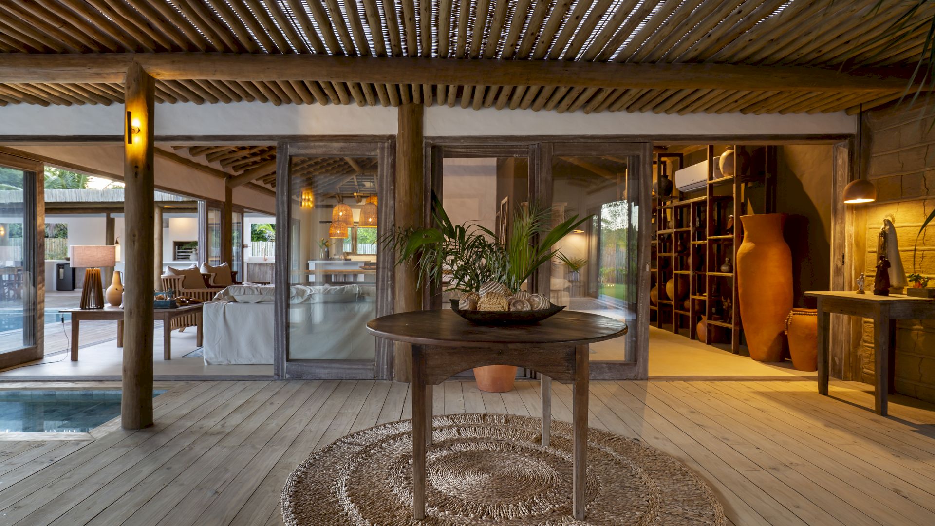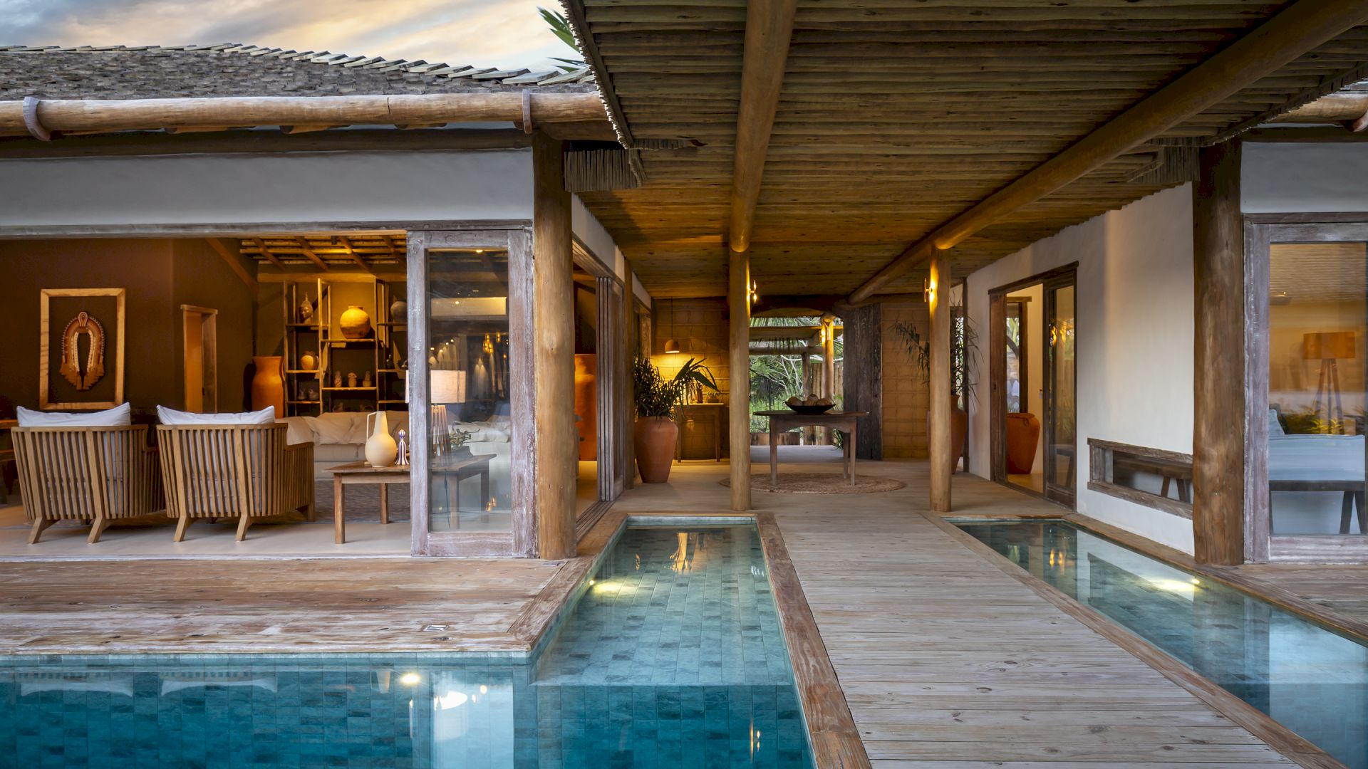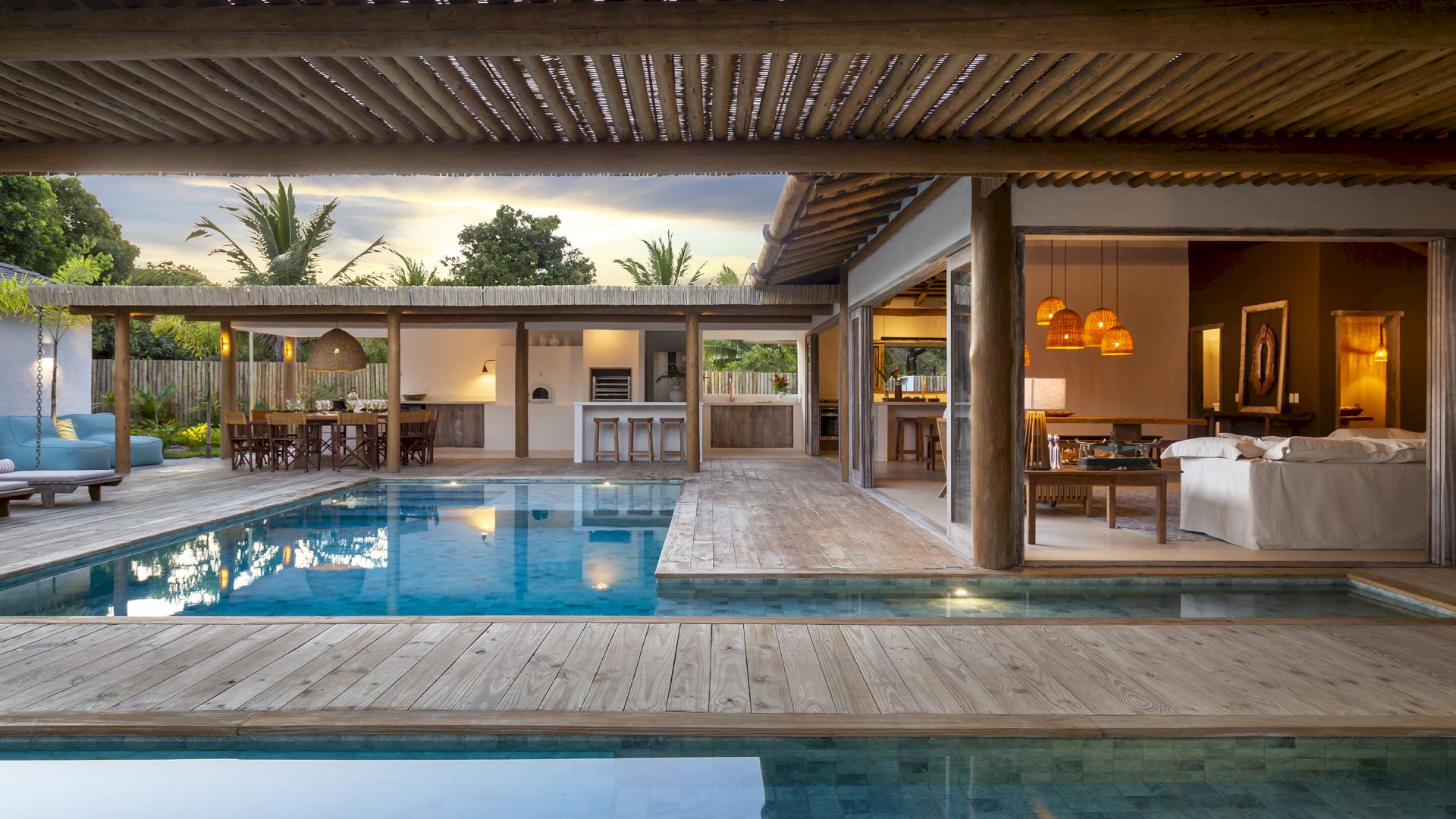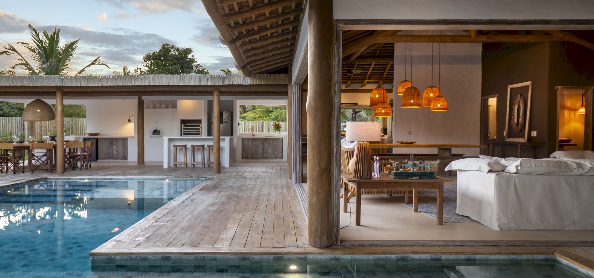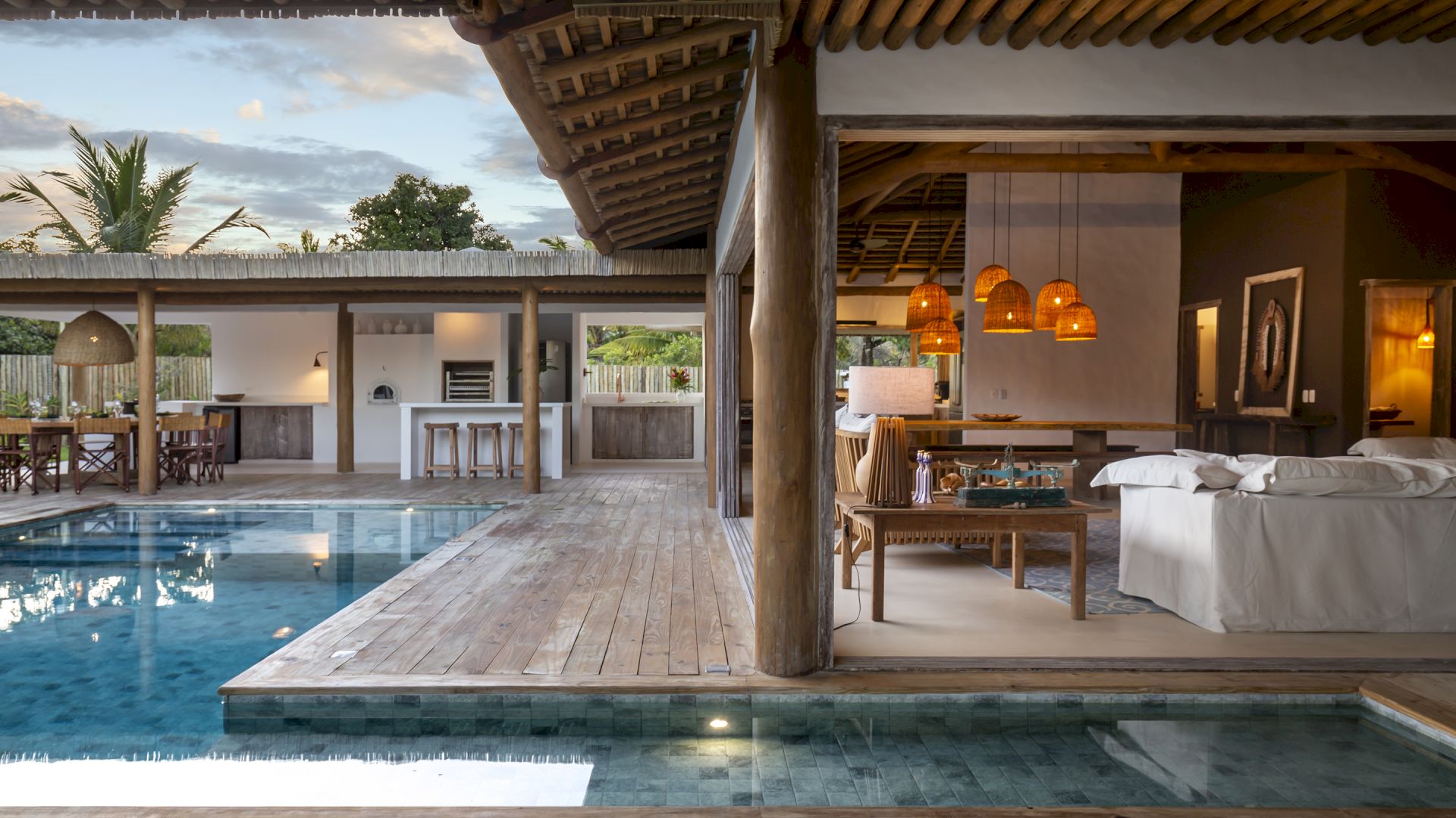 propriedade possui uma horta de especiarias, permitindo aos moradores e hóspedes desfrutar de ervas frescas colhidas diretamente do jardim. A piscina da casa é um verdadeiro destaque, equipada com hidromassagem para uma experiência de luxo. E para os esportistas, o condomínio oferece quadras de tênis e beach tênis, complementando as opções de lazer e atividade física. Villa Pedro Grande 07 não é apenas uma casa; é um convite para uma vida de luxo, conforto e bem-estar, cercada pela beleza natural e pela serenidade de Arraial Trancoso.