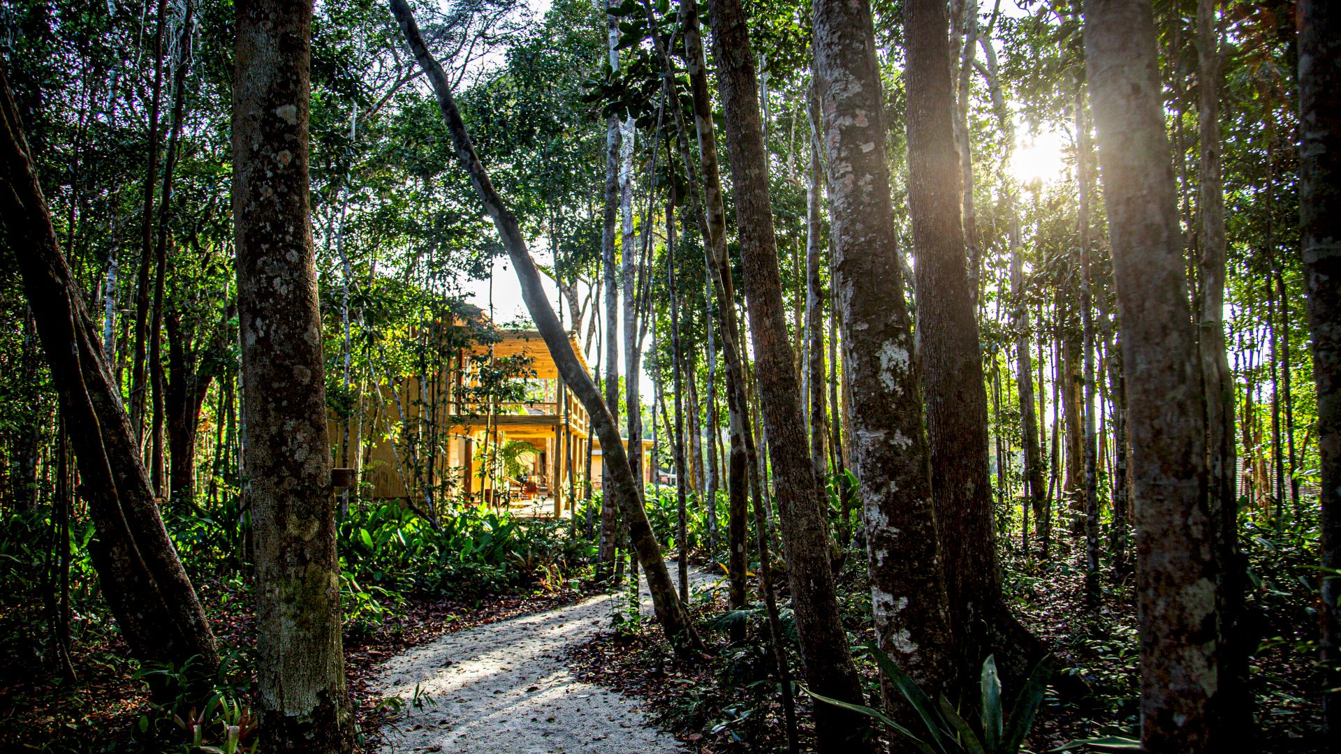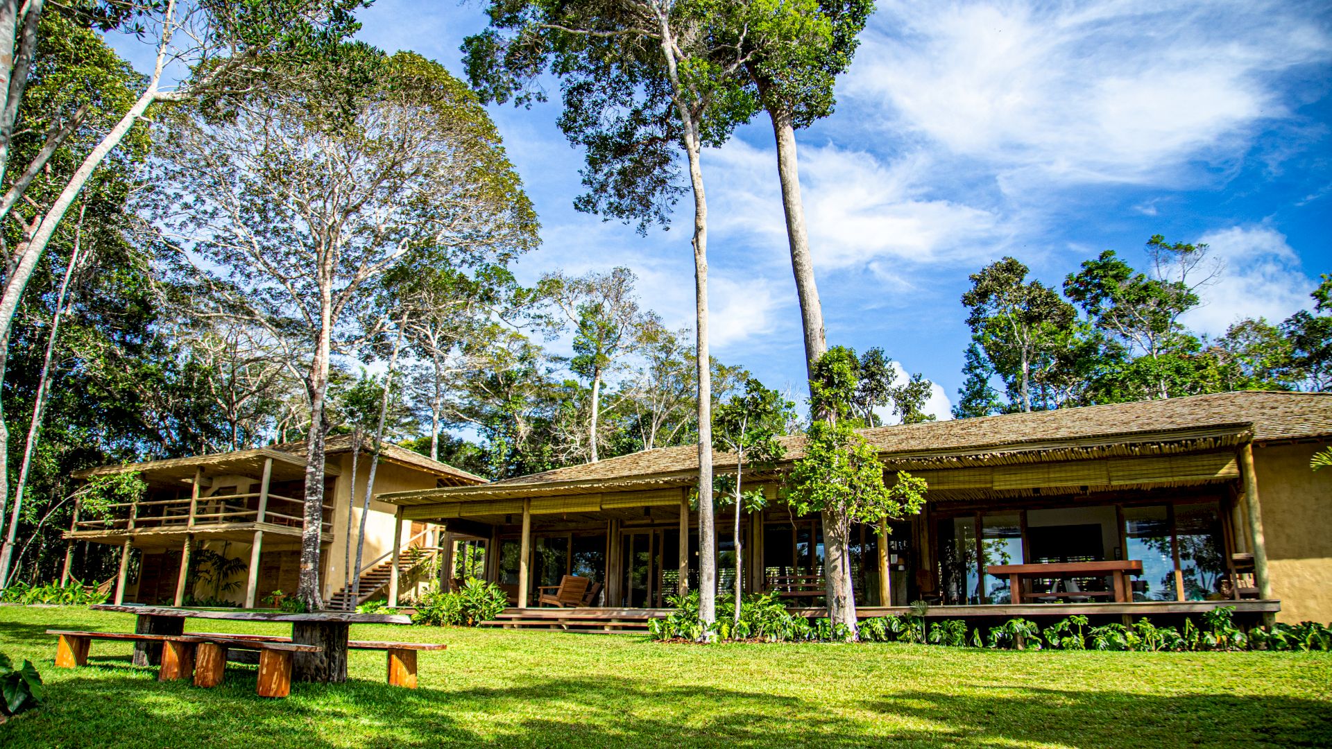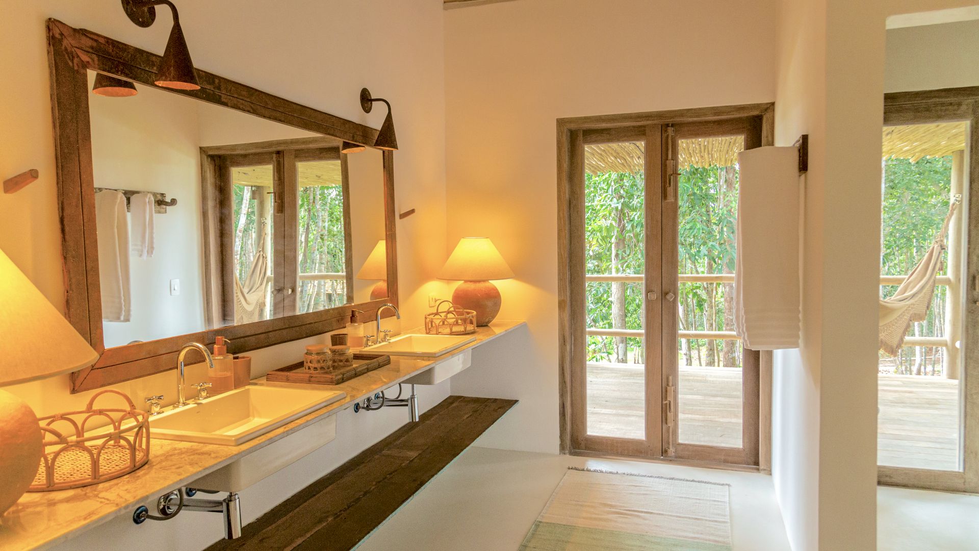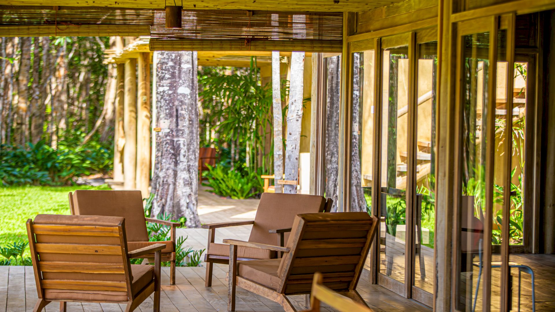 A villa acomoda até 15 hóspedes em 7 suítes distribuídas em três bangalôs independentes, cada um com estilo único e ambientes confortáveis: