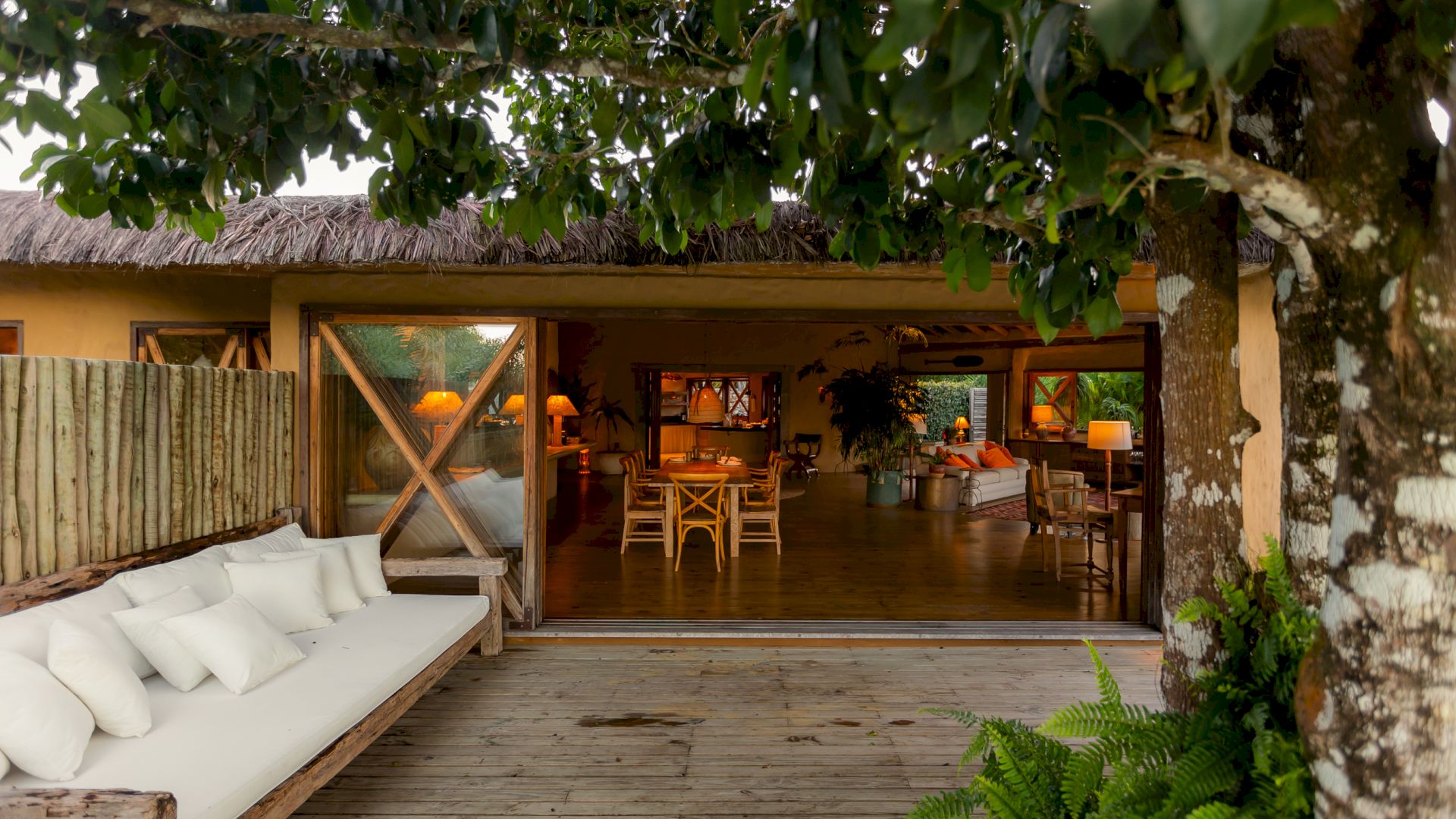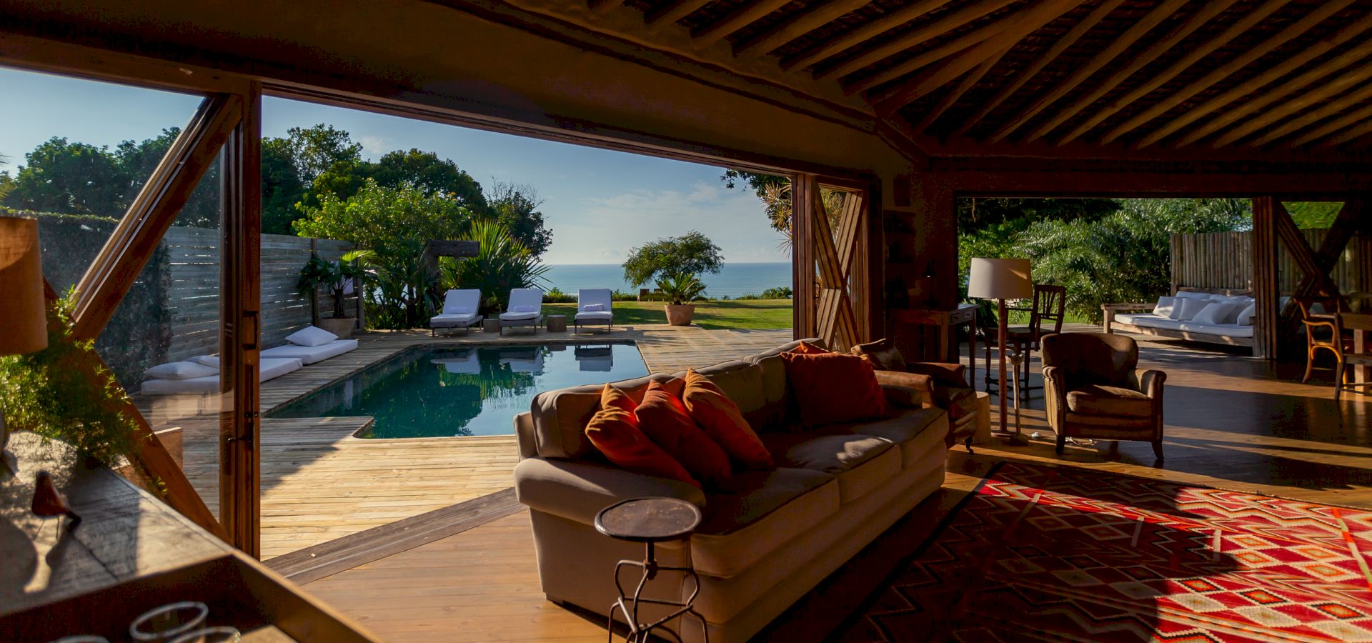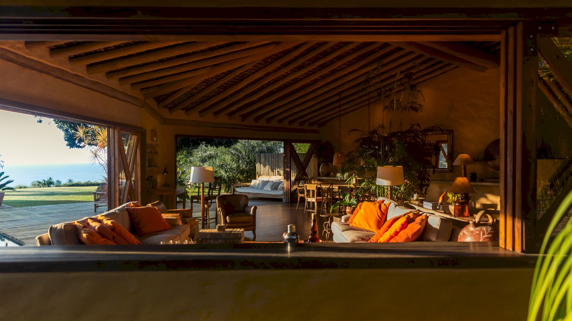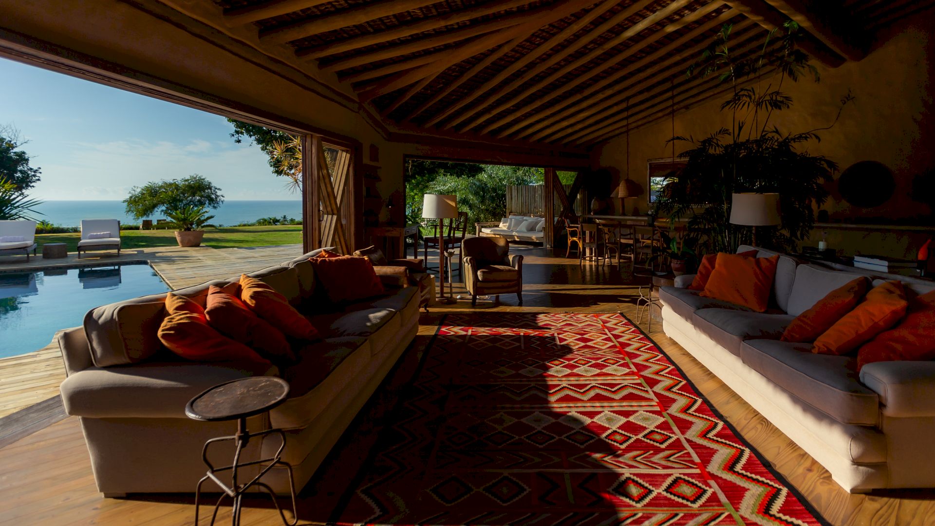 Com arquitetura inspirada nos vilarejos da Tanzânia, a Villa Altos de Trancoso 05 repousa sobre as falésias do CondomÃnio Altos de Trancoso, oferecendo uma vista deslumbrante para o mar. Fugindo do óbvio, mas preservando a essência baiana, a casa proporciona um ambiente de tranquilidade, conforto e exclusividade.
