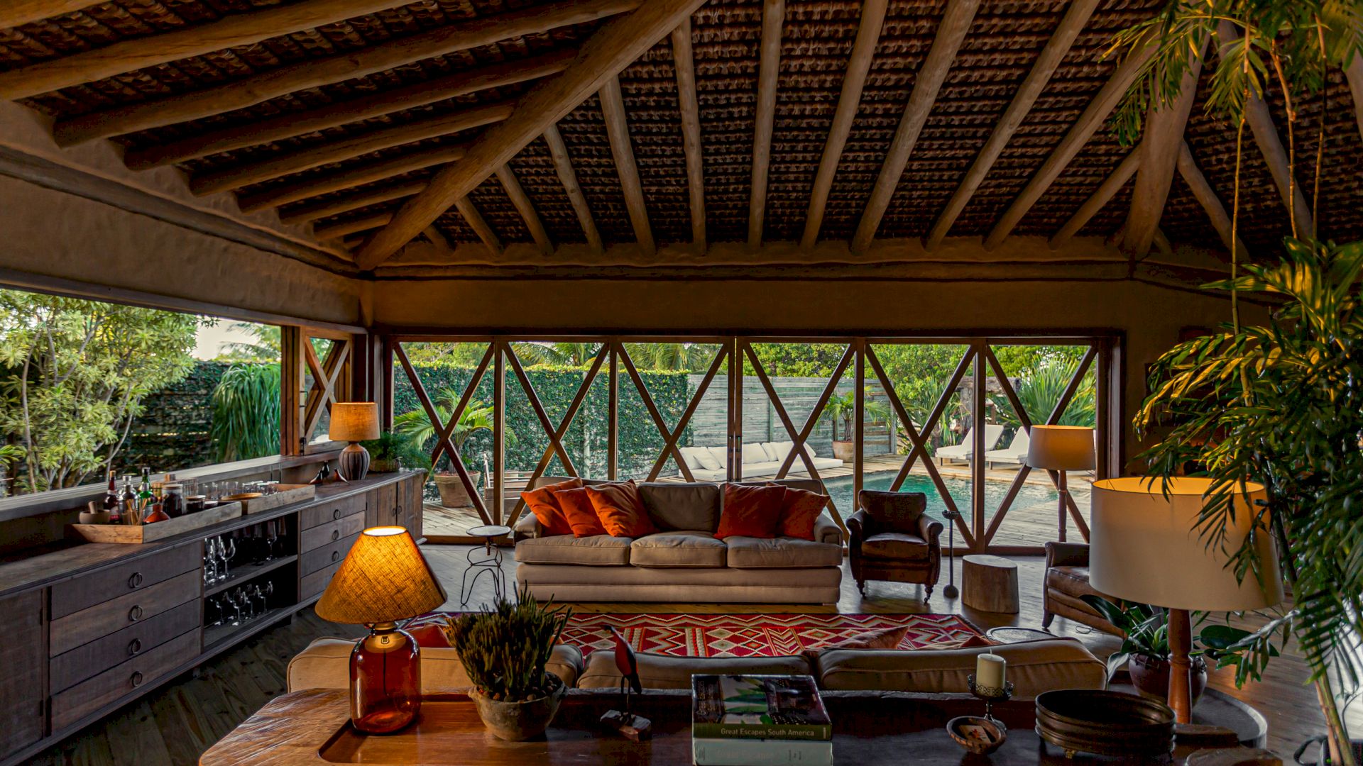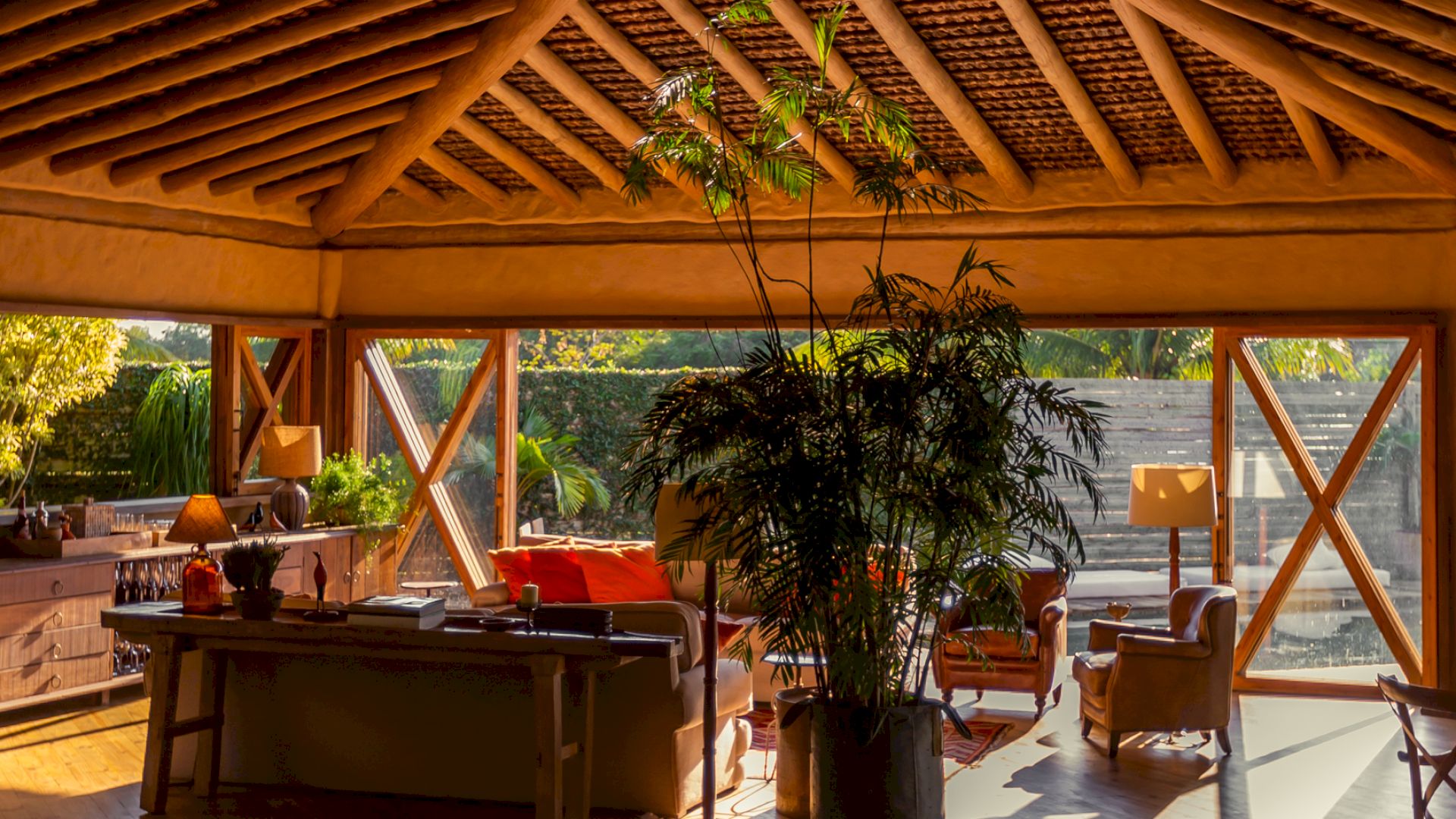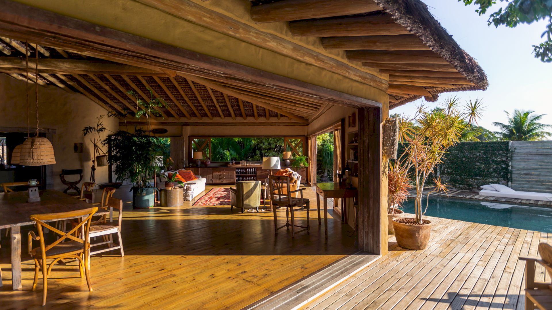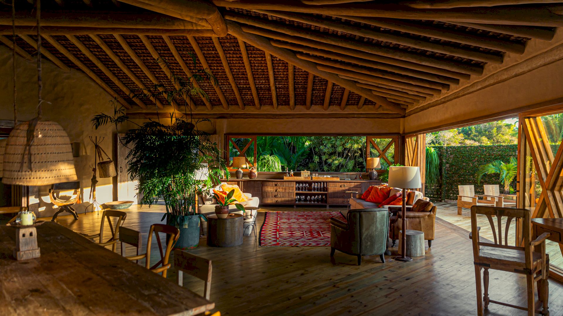 Com arquitetura inspirada nos vilarejos da Tanzânia, a Villa Altos de Trancoso 05 repousa sobre as falésias do CondomÃnio Altos de Trancoso, oferecendo uma vista deslumbrante para o mar. Fugindo do óbvio, mas preservando a essência baiana, a casa proporciona um ambiente de tranquilidade, conforto e exclusividade.
