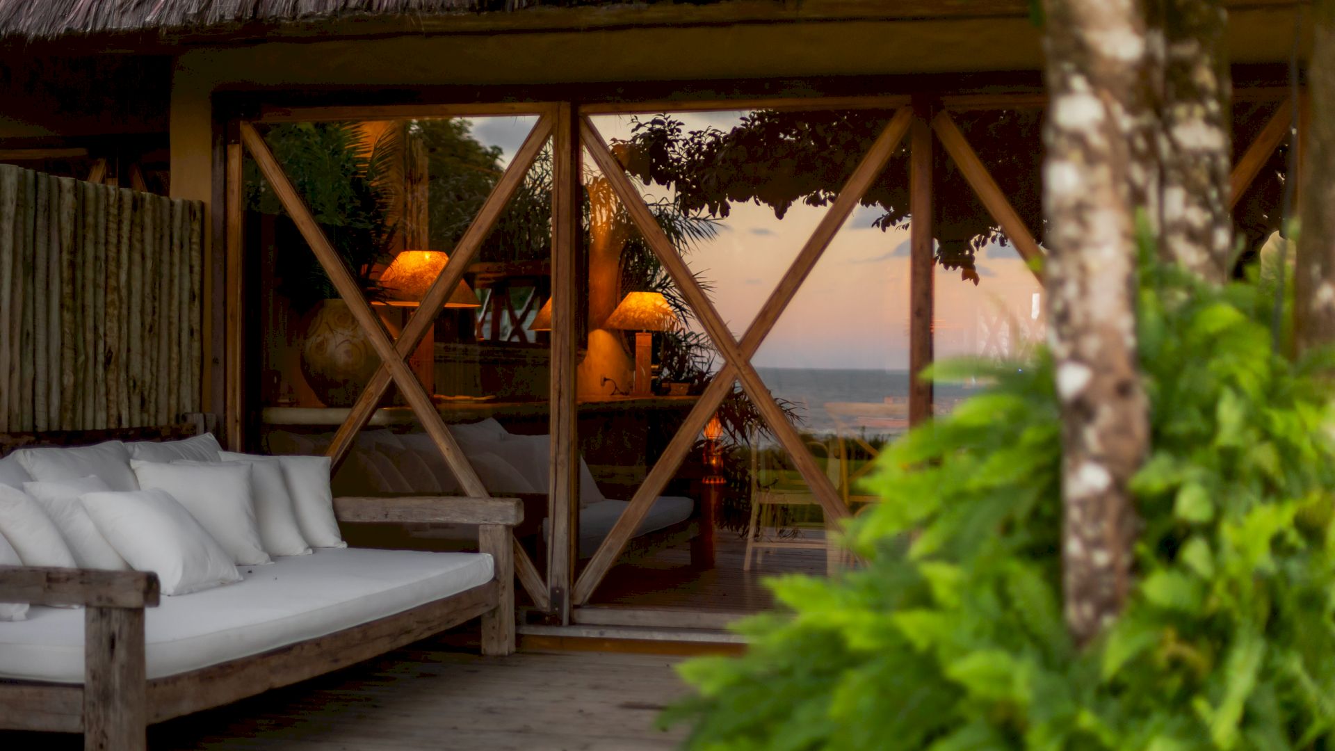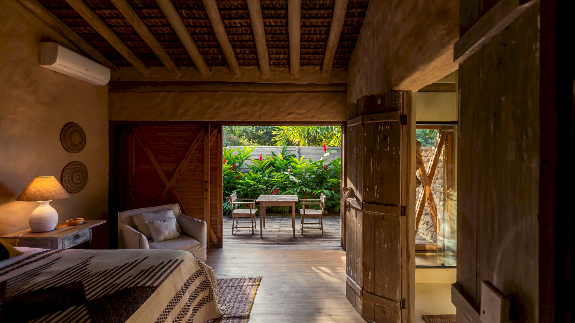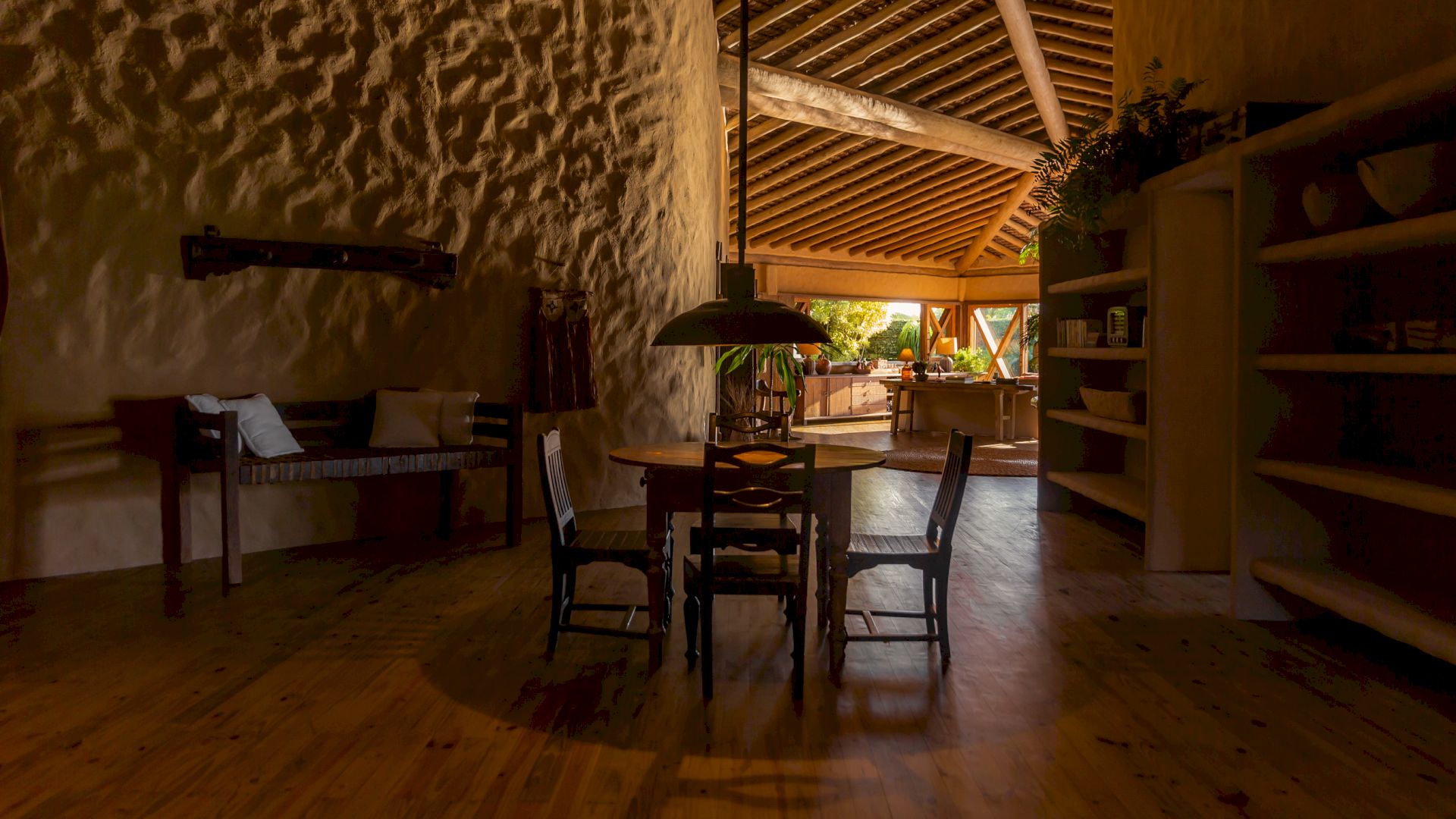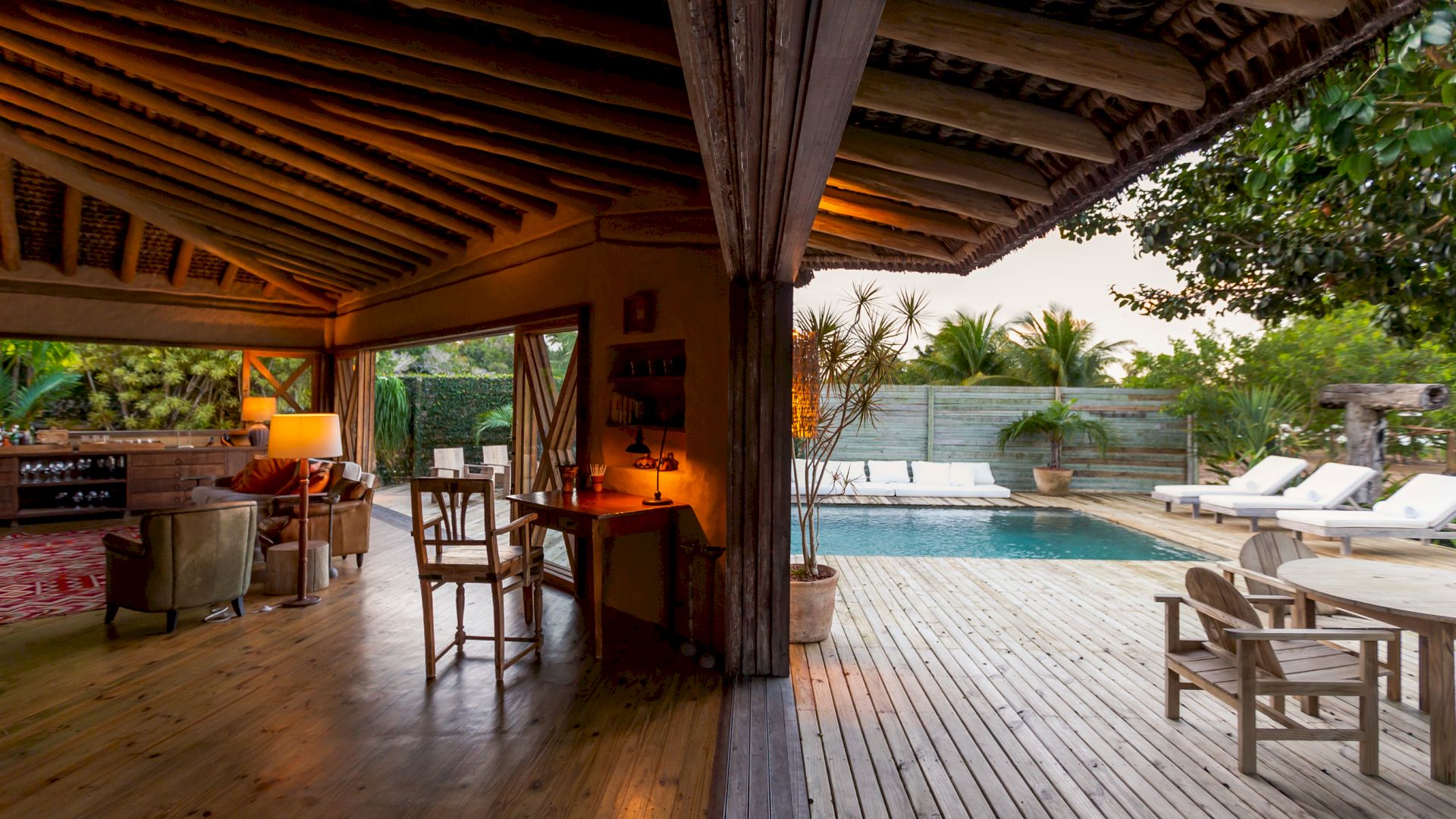 Com arquitetura inspirada nos vilarejos da Tanzânia, a Villa Altos de Trancoso 05 repousa sobre as falésias do CondomÃnio Altos de Trancoso, oferecendo uma vista deslumbrante para o mar. Fugindo do óbvio, mas preservando a essência baiana, a casa proporciona um ambiente de tranquilidade, conforto e exclusividade.