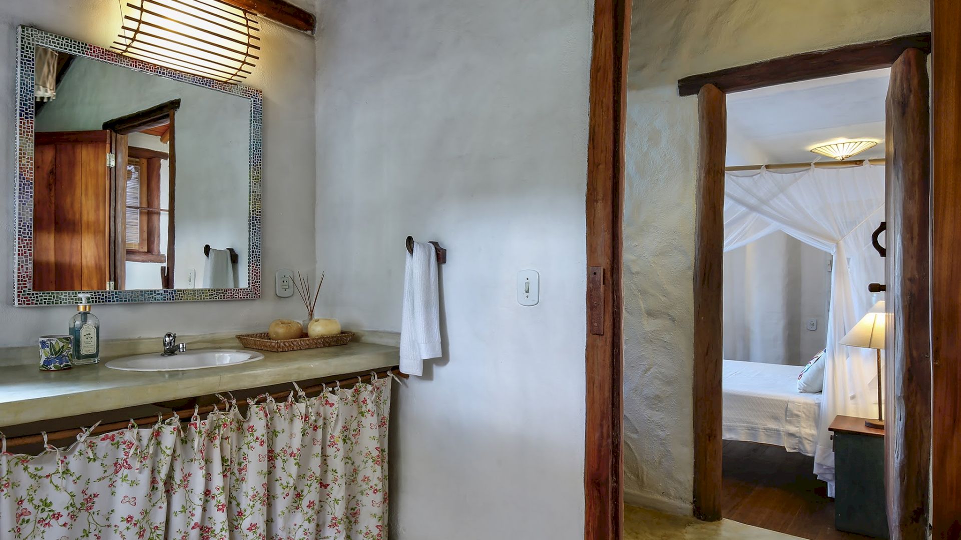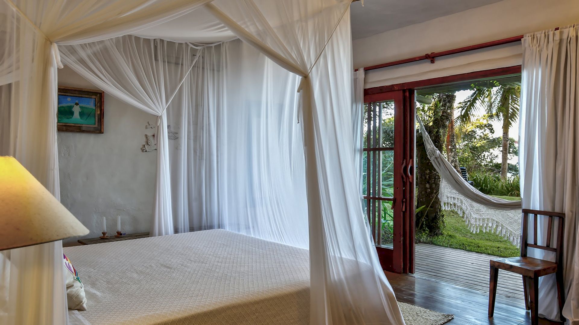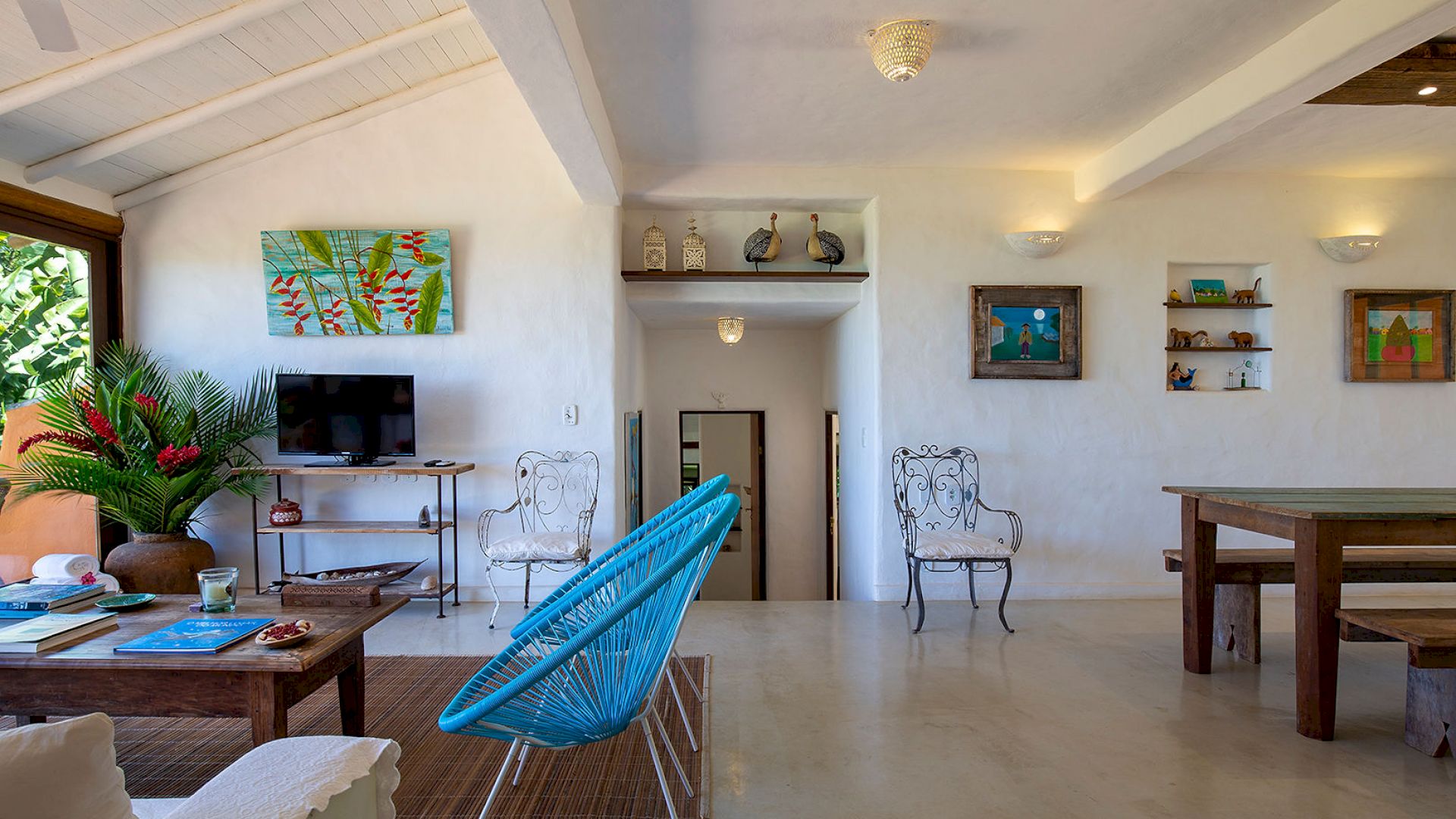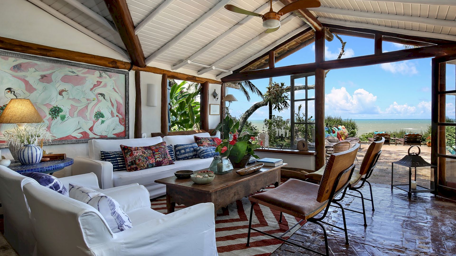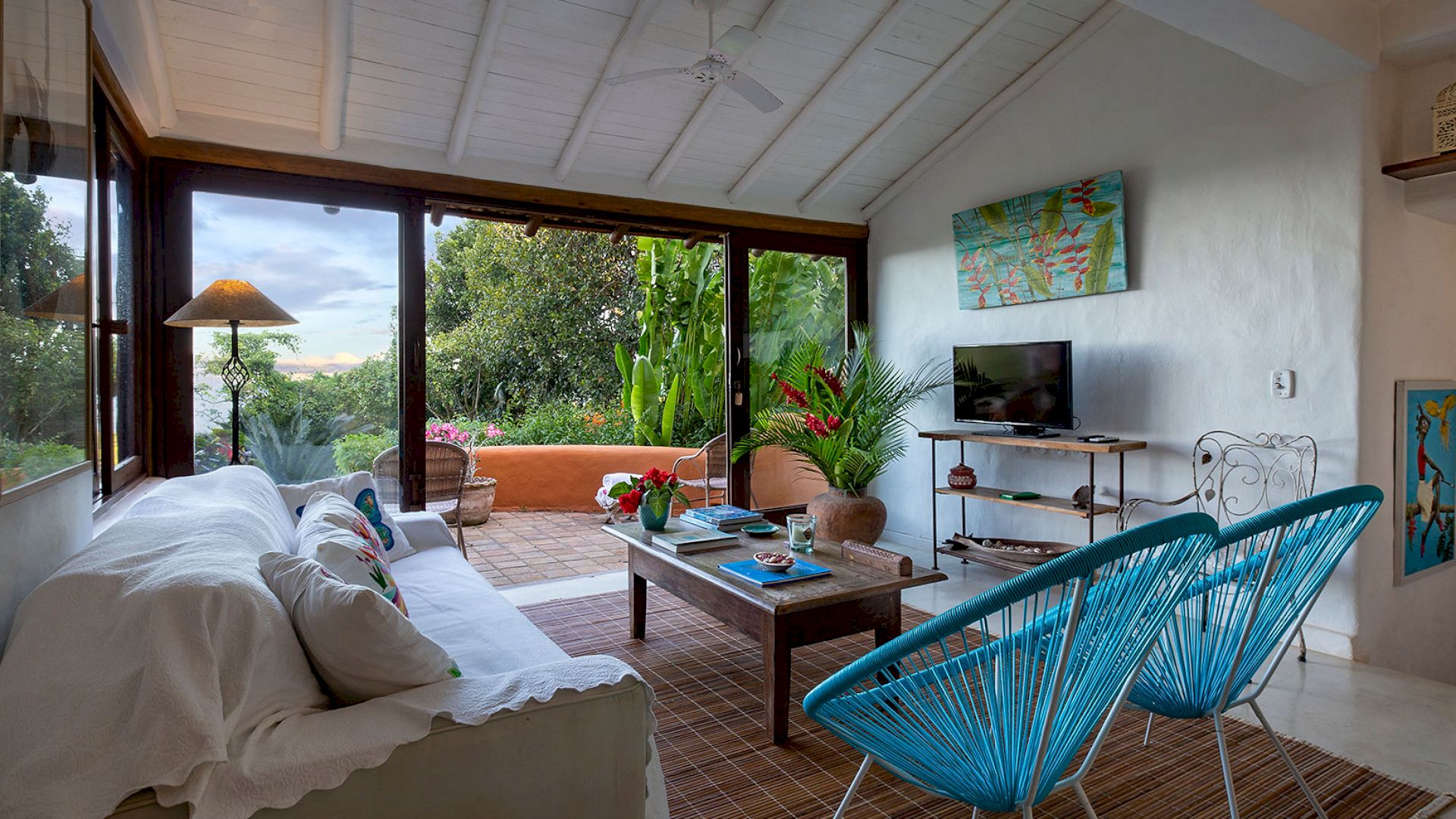 Na Casa Grande, a Suíte Superior, situada no andar superior, dispõe de uma cama king size, TV, closet e frigobar. Sua varanda privativa, com cadeiras confortáveis, oferece um espaço tranquilo para relaxar, apreciando a vista e a brisa do mar. Outra suíte, com vista para o mar, conta com uma cama queen size, closet e uma varanda com rede, ideal para desfrutar do cenário deslumbrante do oceano. Já a terceira suíte, com vista para o jardim, possui uma cama queen size, armário e uma varanda equipada com rede e cadeiras, criando um ambiente acolhedor em meio à natureza.