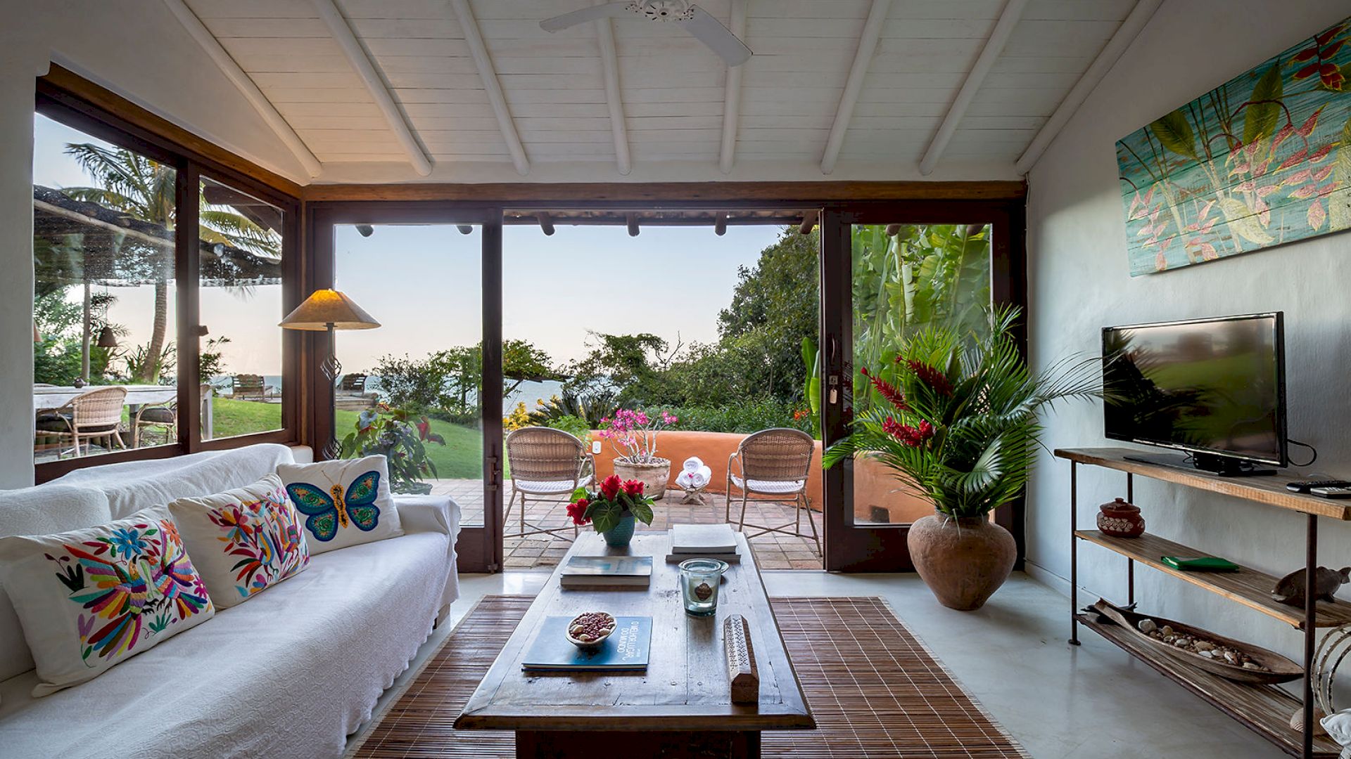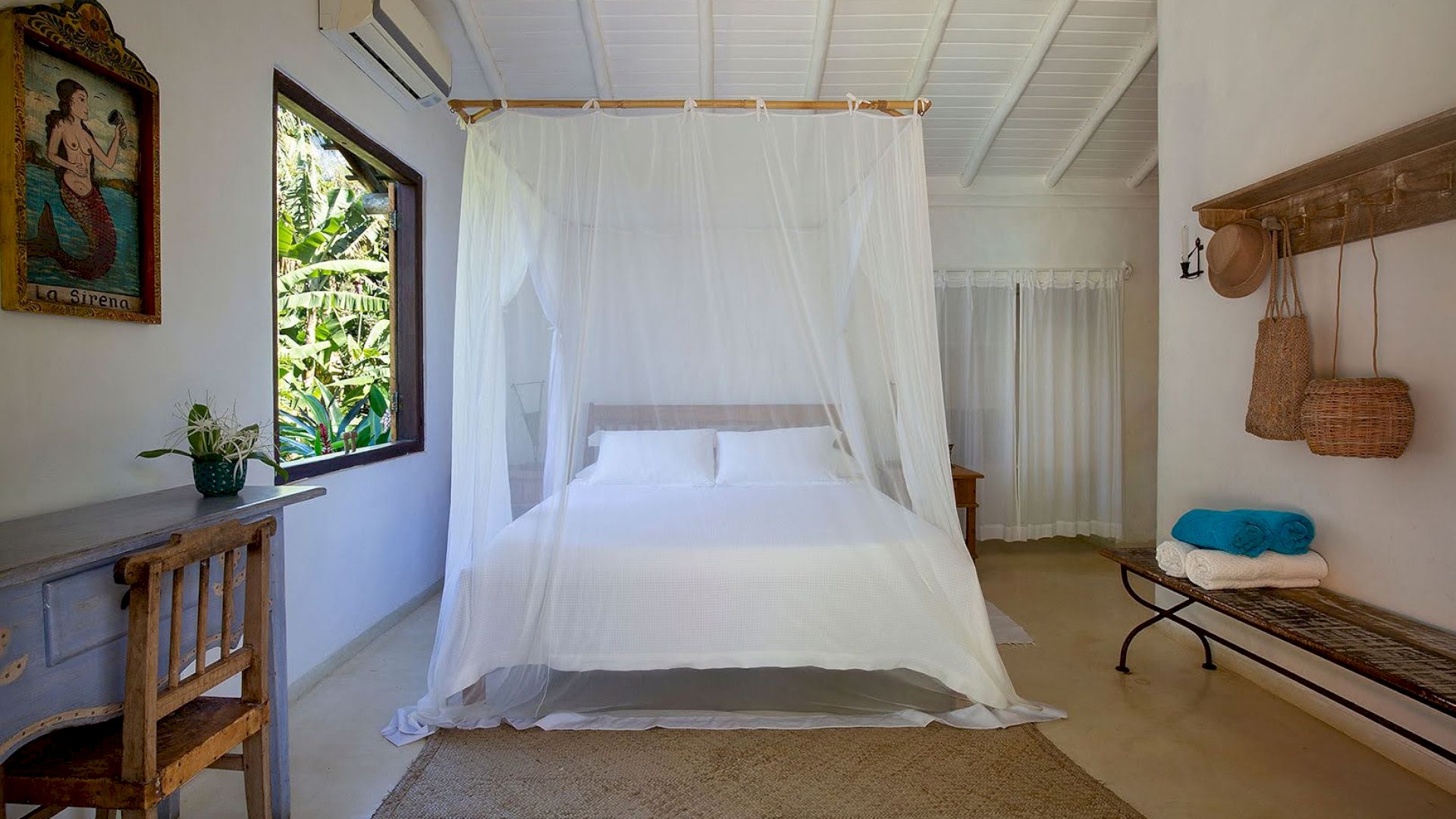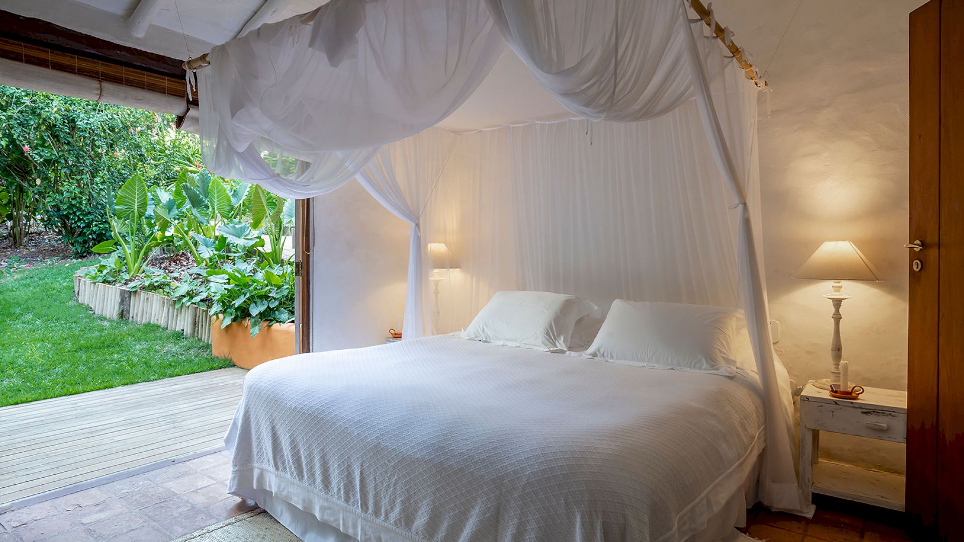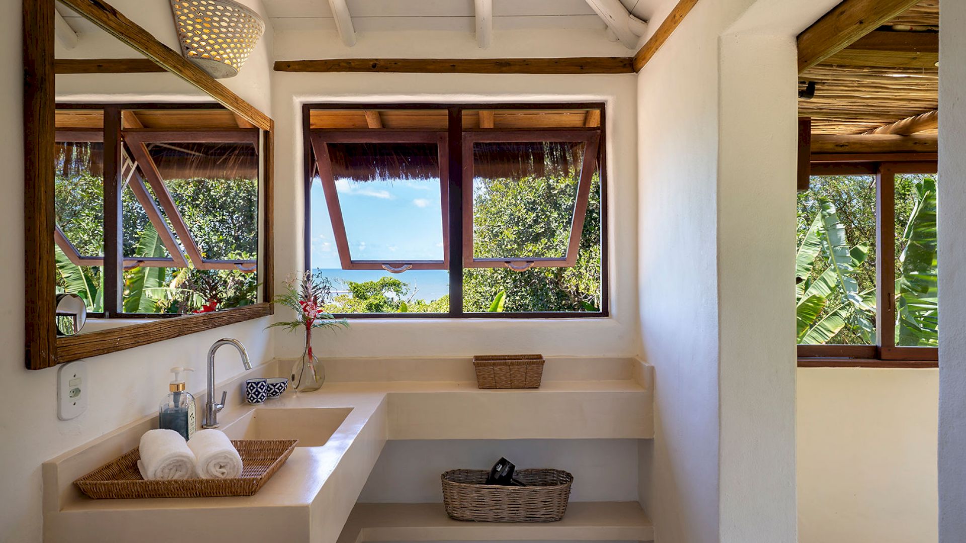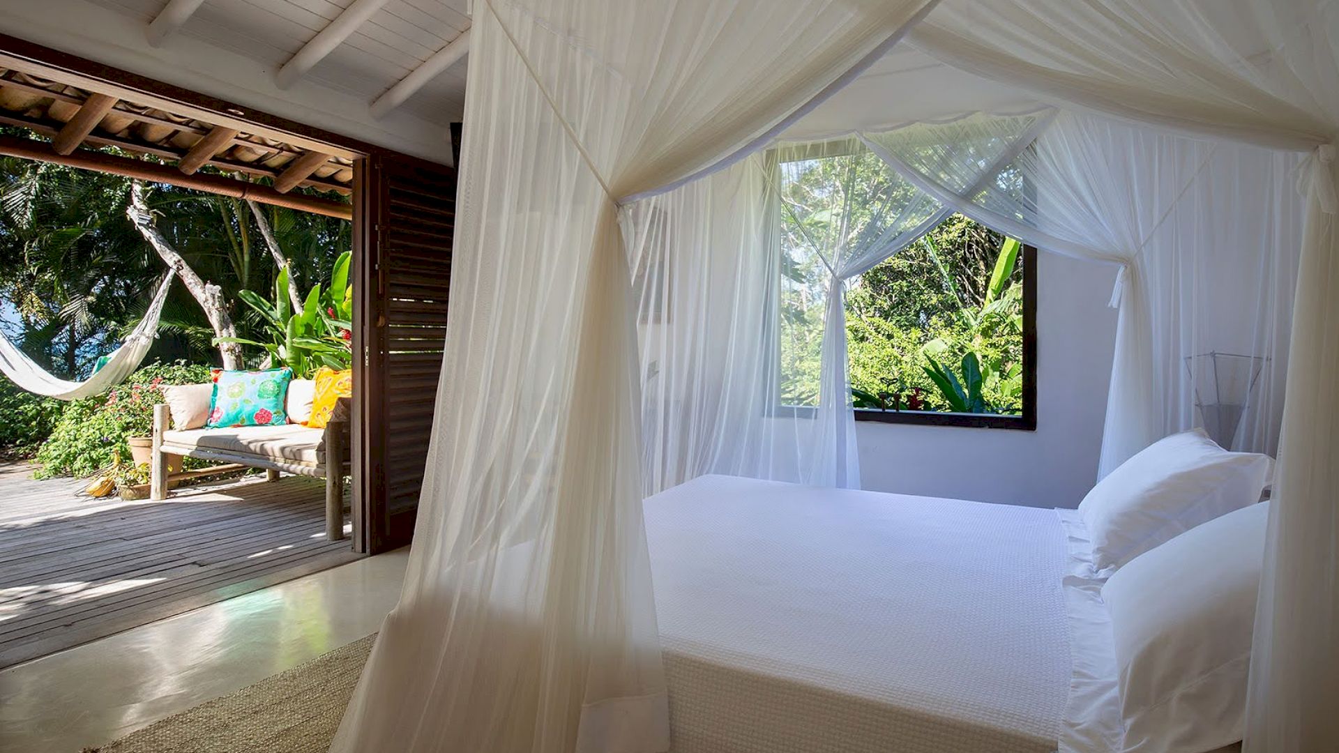 Na Casa Grande, a Suíte Superior, situada no andar superior, dispõe de uma cama king size, TV, closet e frigobar. Sua varanda privativa, com cadeiras confortáveis, oferece um espaço tranquilo para relaxar, apreciando a vista e a brisa do mar. Outra suíte, com vista para o mar, conta com uma cama queen size, closet e uma varanda com rede, ideal para desfrutar do cenário deslumbrante do oceano. Já a terceira suíte, com vista para o jardim, possui uma cama queen size, armário e uma varanda equipada com rede e cadeiras, criando um ambiente acolhedor em meio à natureza.