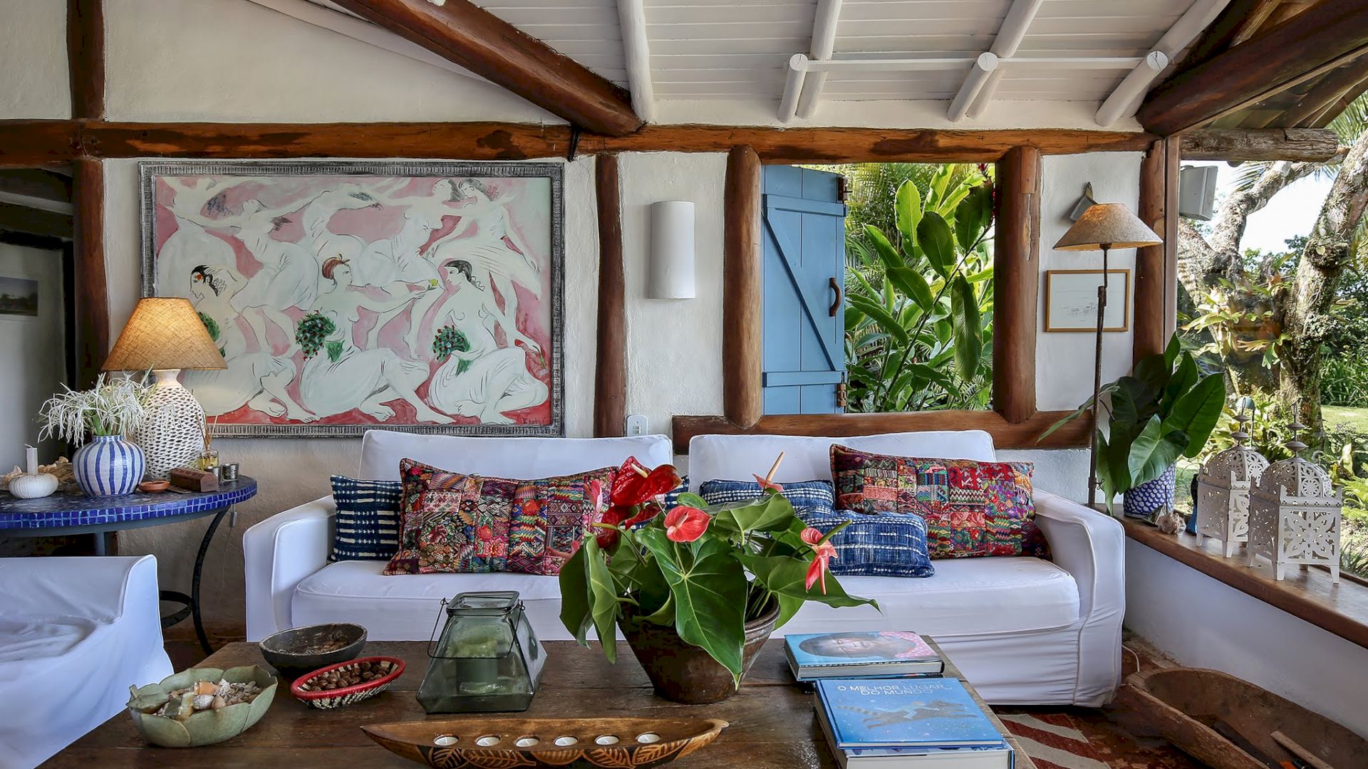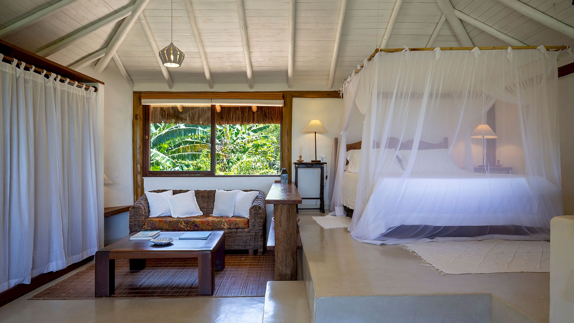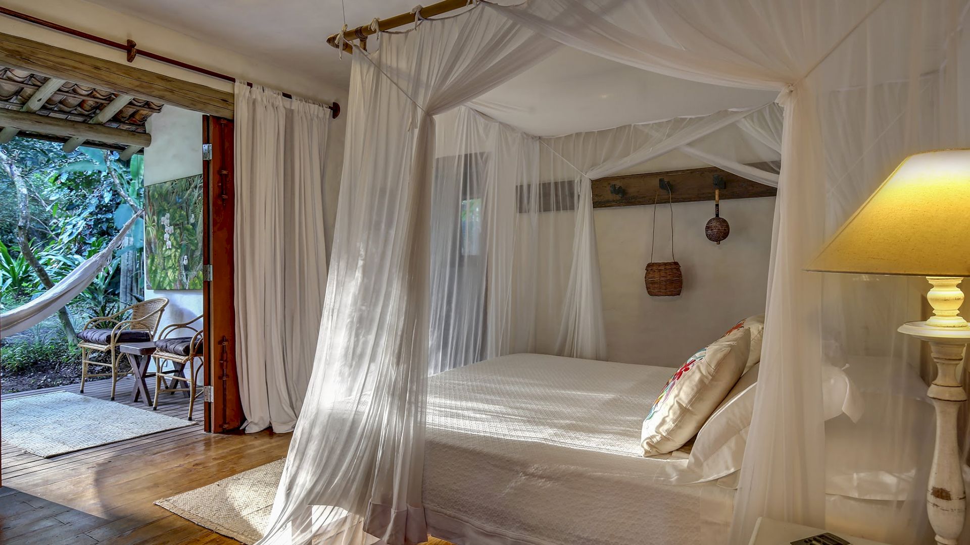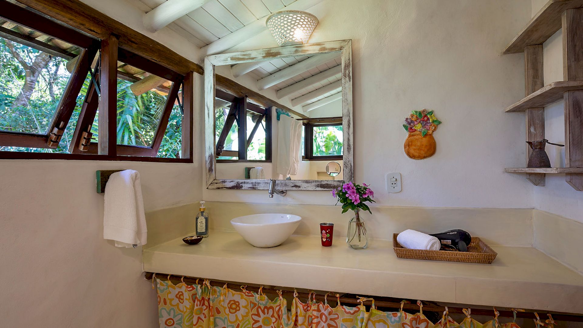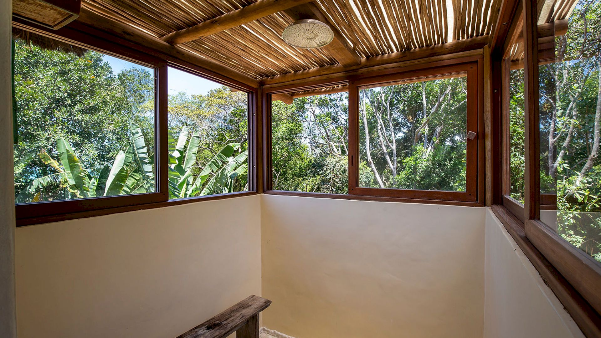Na Casa Grande, a Suíte Superior, situada no andar superior, dispõe de uma cama king size, TV, closet e frigobar. Sua varanda privativa, com cadeiras confortáveis, oferece um espaço tranquilo para relaxar, apreciando a vista e a brisa do mar. Outra suíte, com vista para o mar, conta com uma cama queen size, closet e uma varanda com rede, ideal para desfrutar do cenário deslumbrante do oceano. Já a terceira suíte, com vista para o jardim, possui uma cama queen size, armário e uma varanda equipada com rede e cadeiras, criando um ambiente acolhedor em meio à natureza.