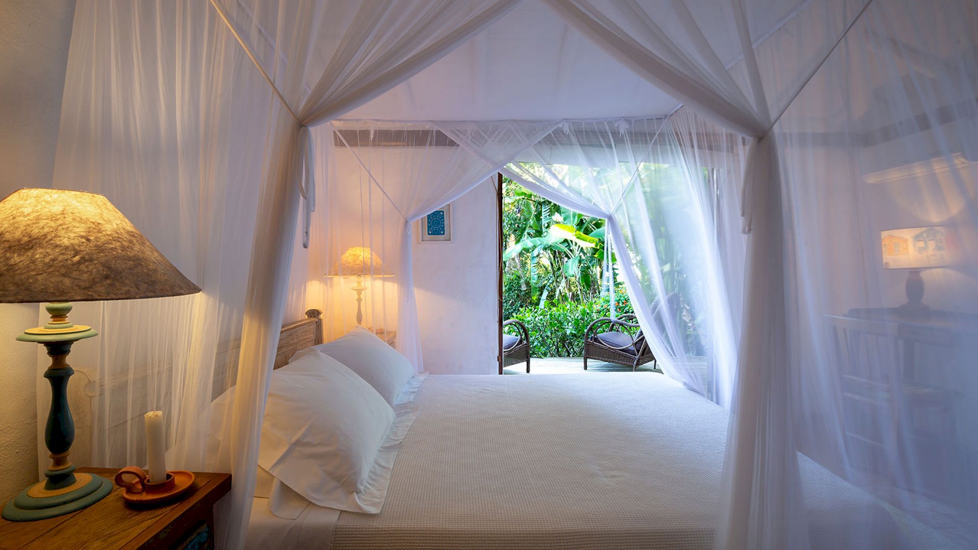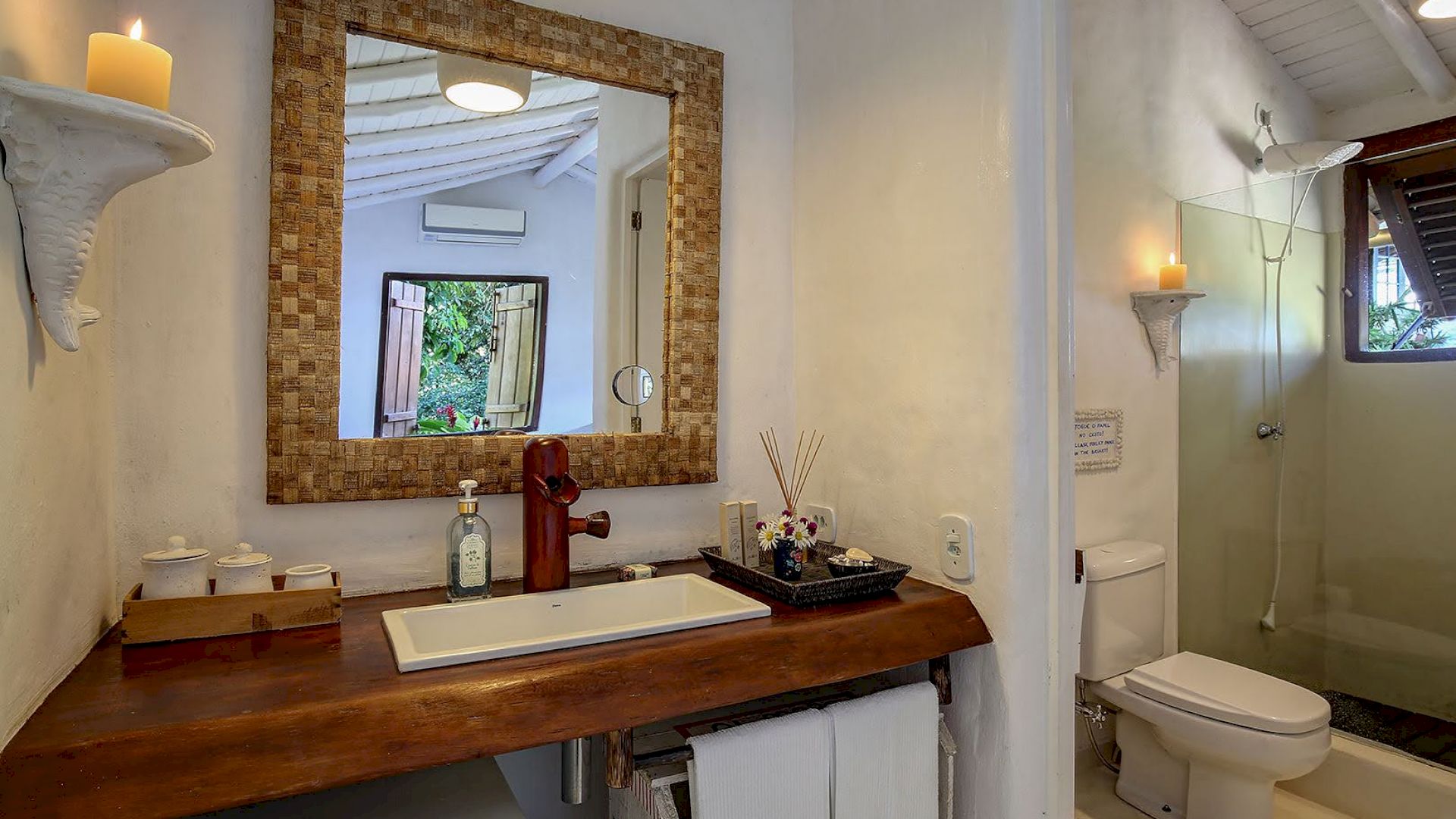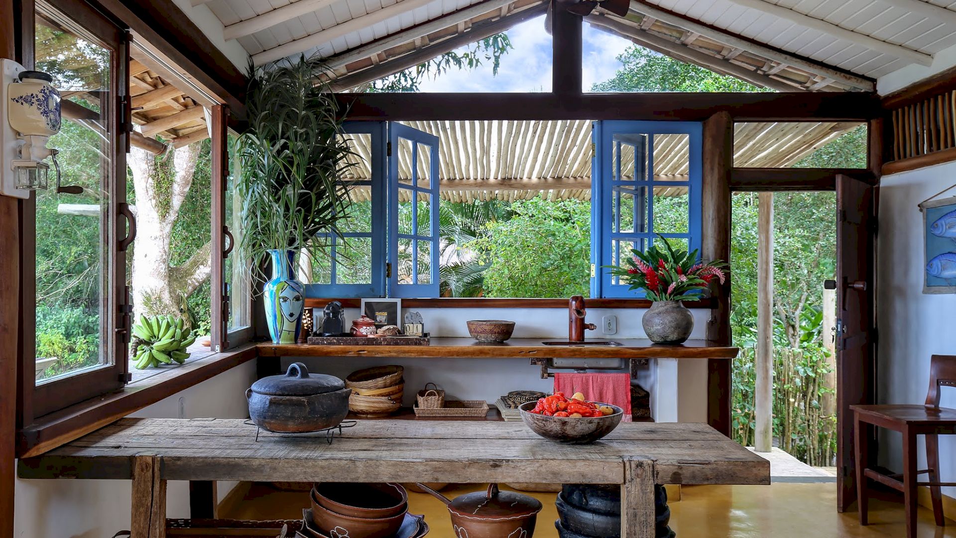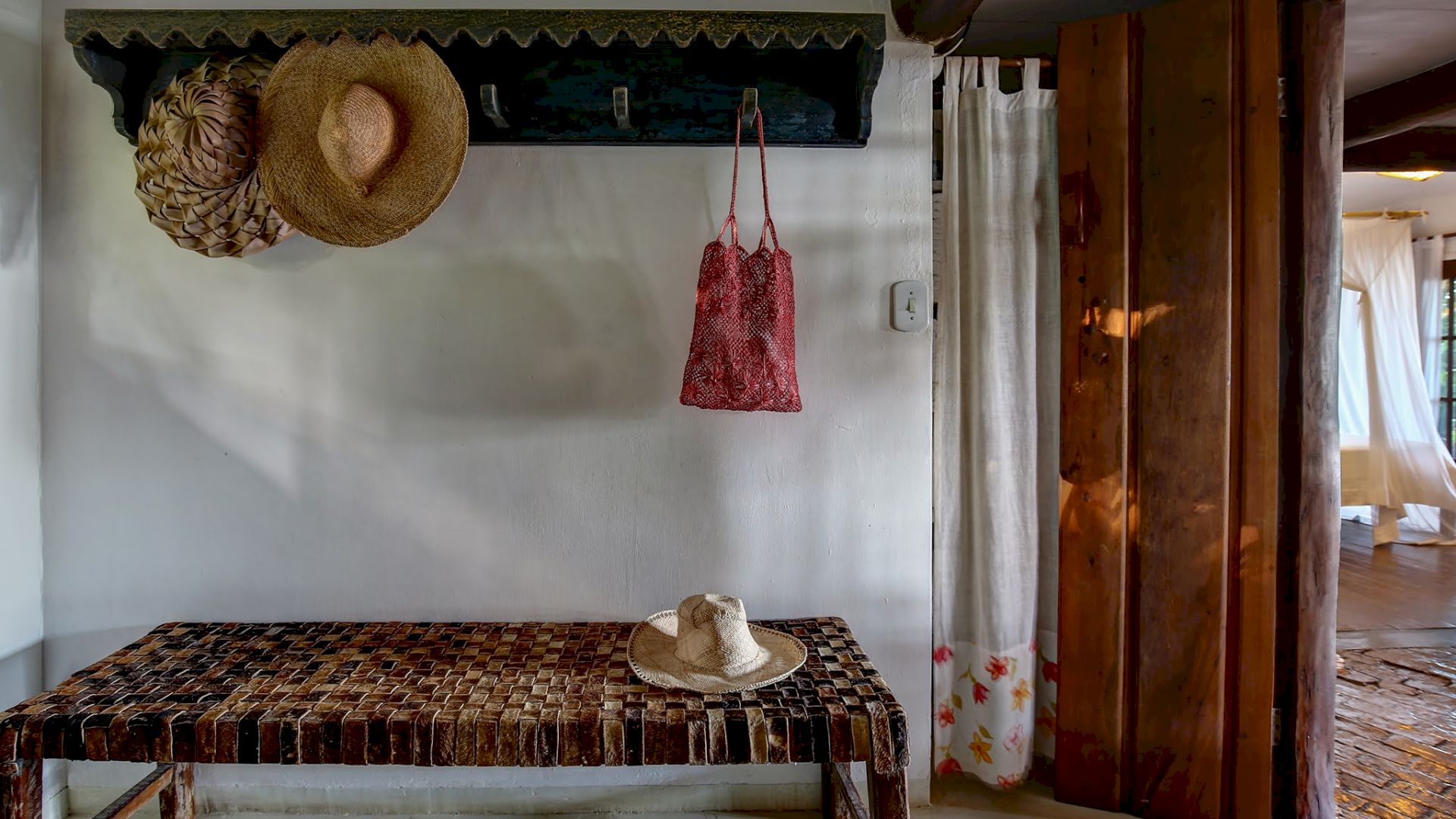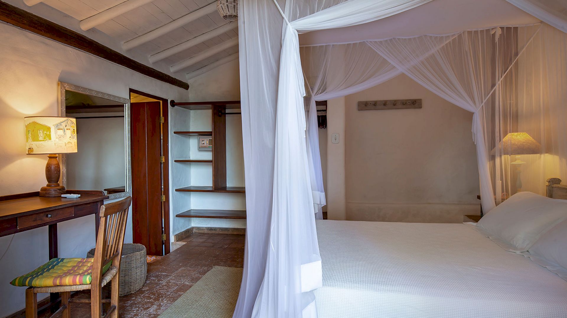 Na Casa Grande, a Suíte Superior, situada no andar superior, dispõe de uma cama king size, TV, closet e frigobar. Sua varanda privativa, com cadeiras confortáveis, oferece um espaço tranquilo para relaxar, apreciando a vista e a brisa do mar. Outra suíte, com vista para o mar, conta com uma cama queen size, closet e uma varanda com rede, ideal para desfrutar do cenário deslumbrante do oceano. Já a terceira suíte, com vista para o jardim, possui uma cama queen size, armário e uma varanda equipada com rede e cadeiras, criando um ambiente acolhedor em meio à natureza.