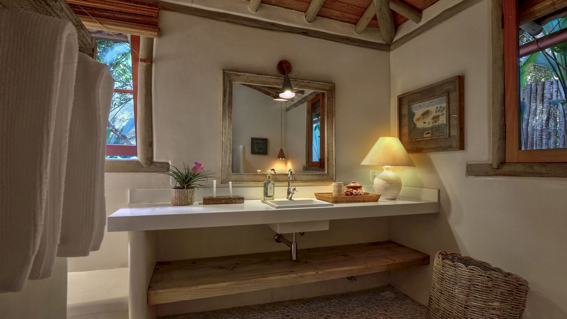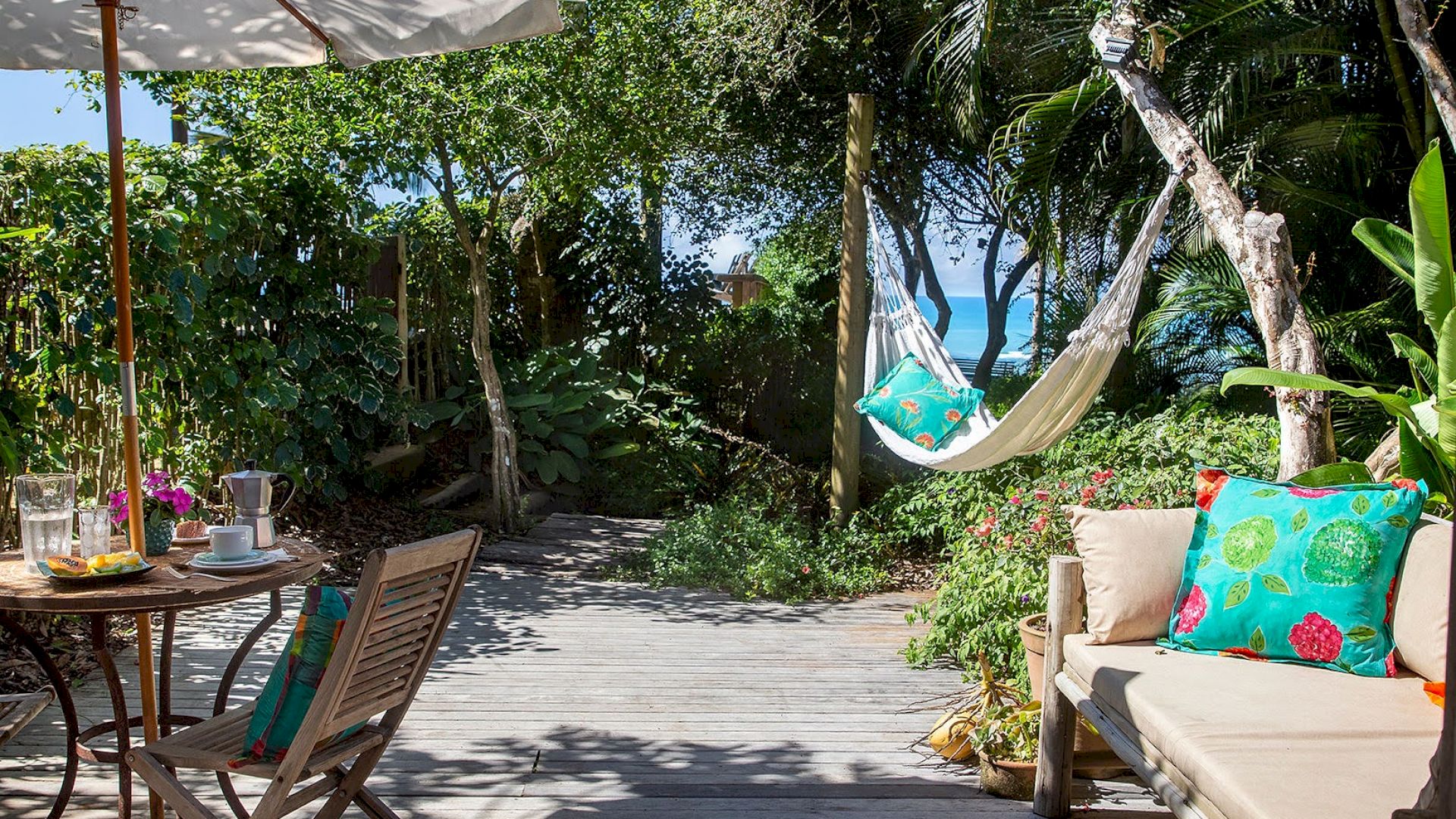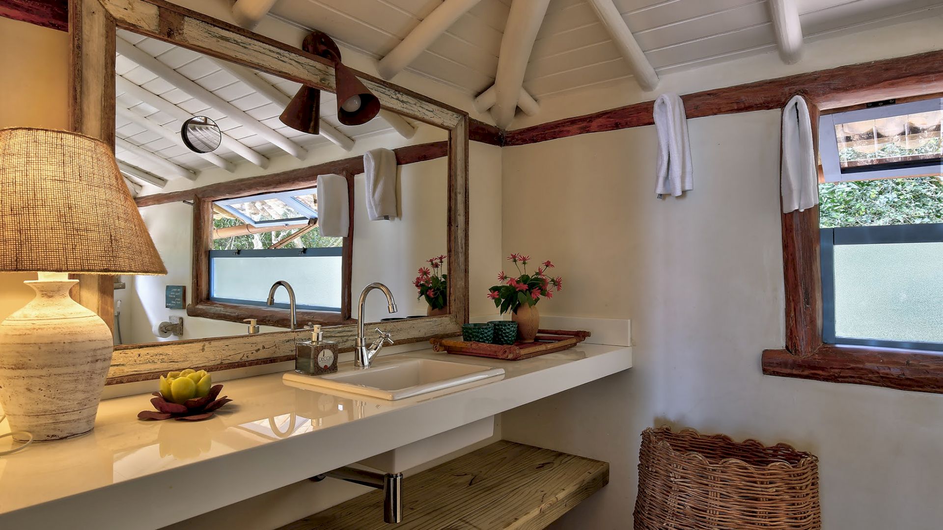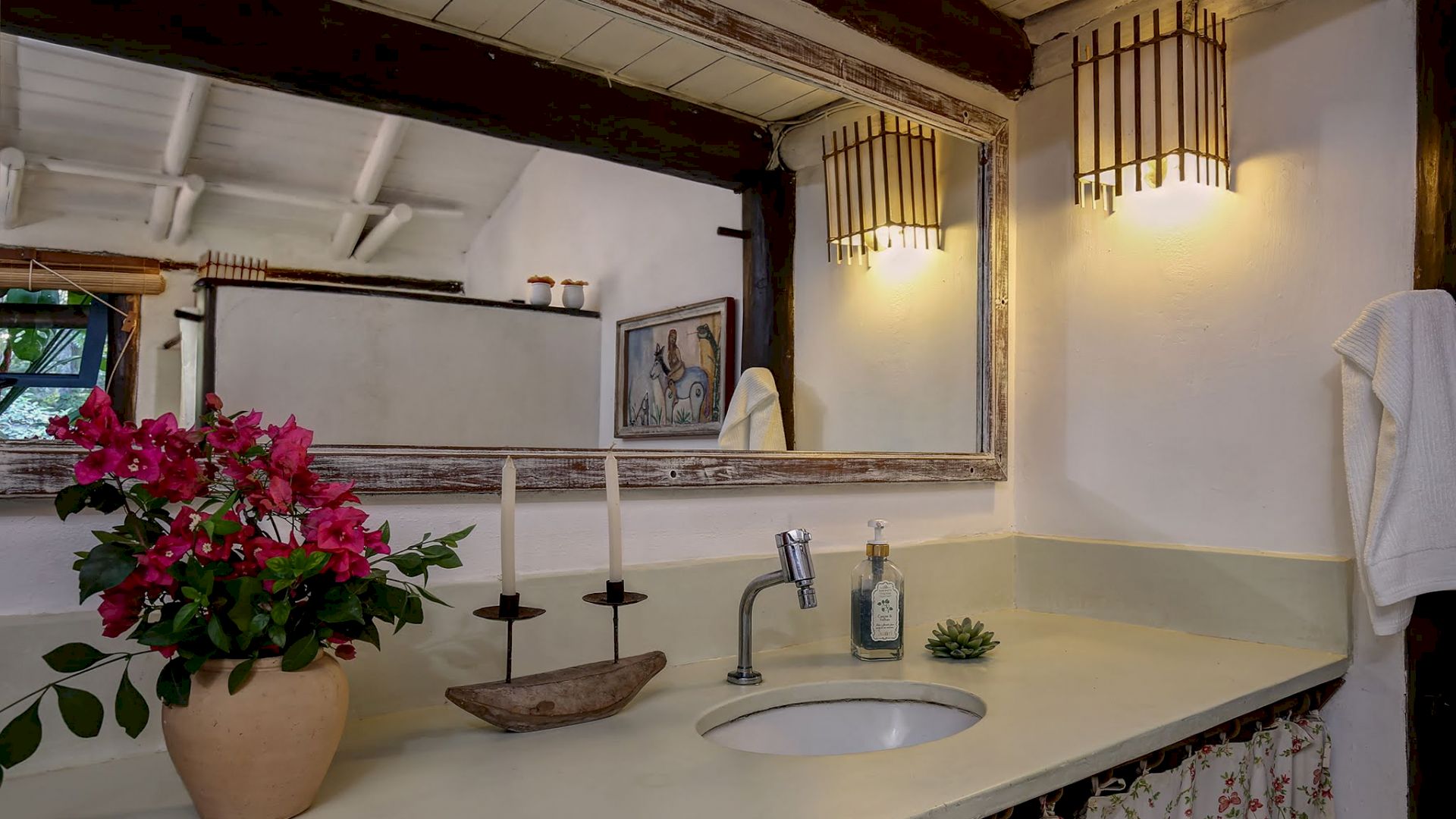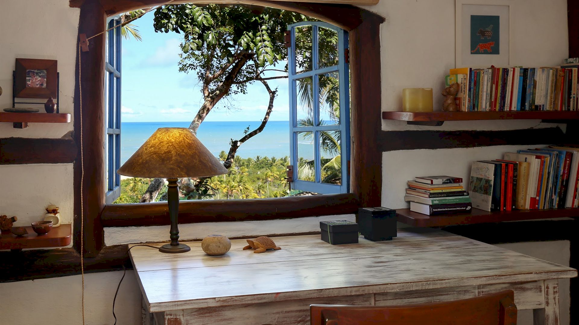 Na Casa Grande, a Suíte Superior, situada no andar superior, dispõe de uma cama king size, TV, closet e frigobar. Sua varanda privativa, com cadeiras confortáveis, oferece um espaço tranquilo para relaxar, apreciando a vista e a brisa do mar. Outra suíte, com vista para o mar, conta com uma cama queen size, closet e uma varanda com rede, ideal para desfrutar do cenário deslumbrante do oceano. Já a terceira suíte, com vista para o jardim, possui uma cama queen size, armário e uma varanda equipada com rede e cadeiras, criando um ambiente acolhedor em meio à natureza.