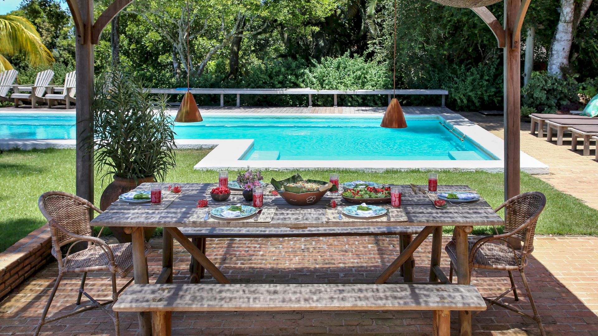 A área externa da Villa Quadrado 02 é um convite ao lazer, com piscina, churrasqueira e uma área gourmet completa. Os hóspedes podem contar com um staff dedicado, composto por governanta, cozinheira, camareira, jardineiro e segurança. A casa também está equipada com sistema de segurança, poço artesiano, gerador de energia e infraestrutura completa para praia. Ideal para quem deseja desfrutar de dias tranquilos em um dos destinos mais charmosos do litoral baiano.