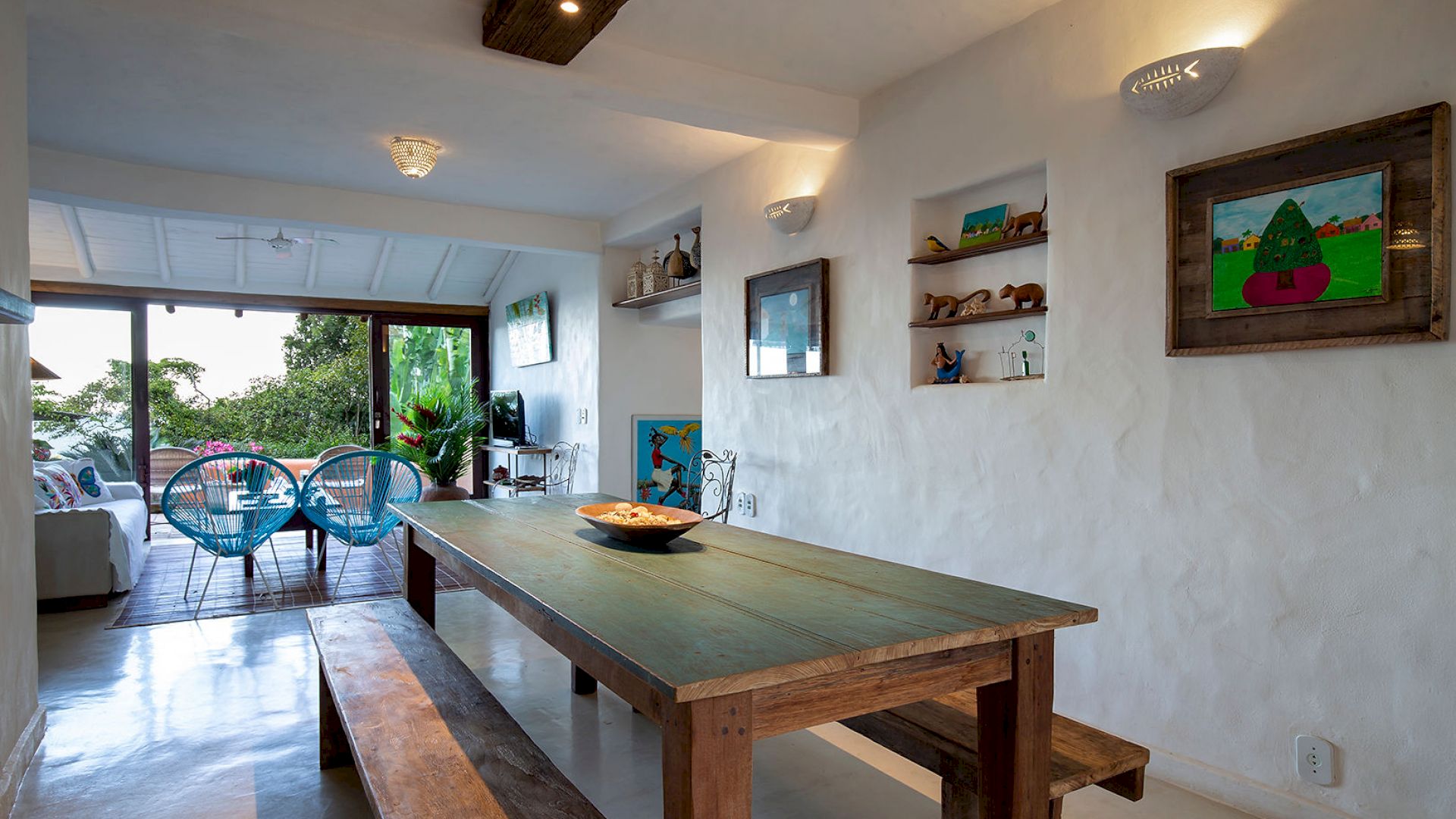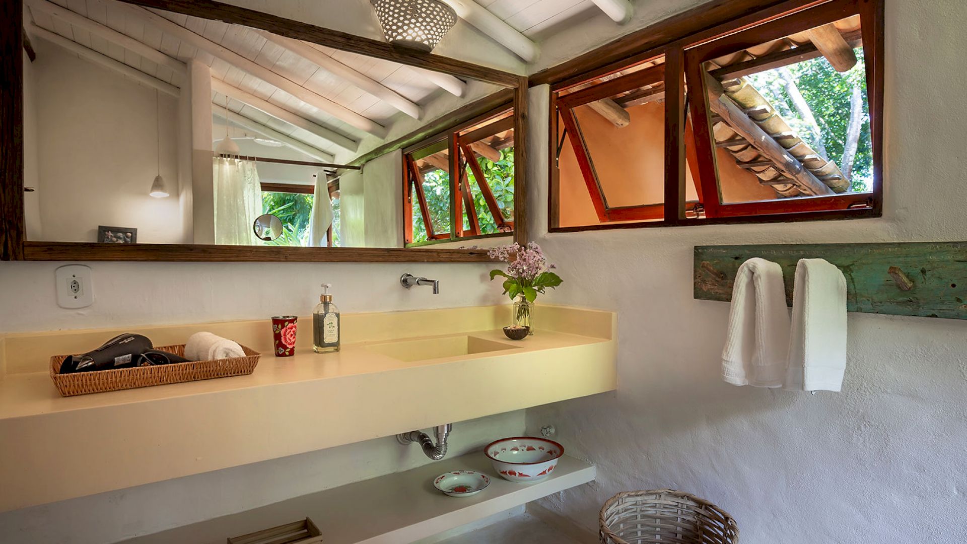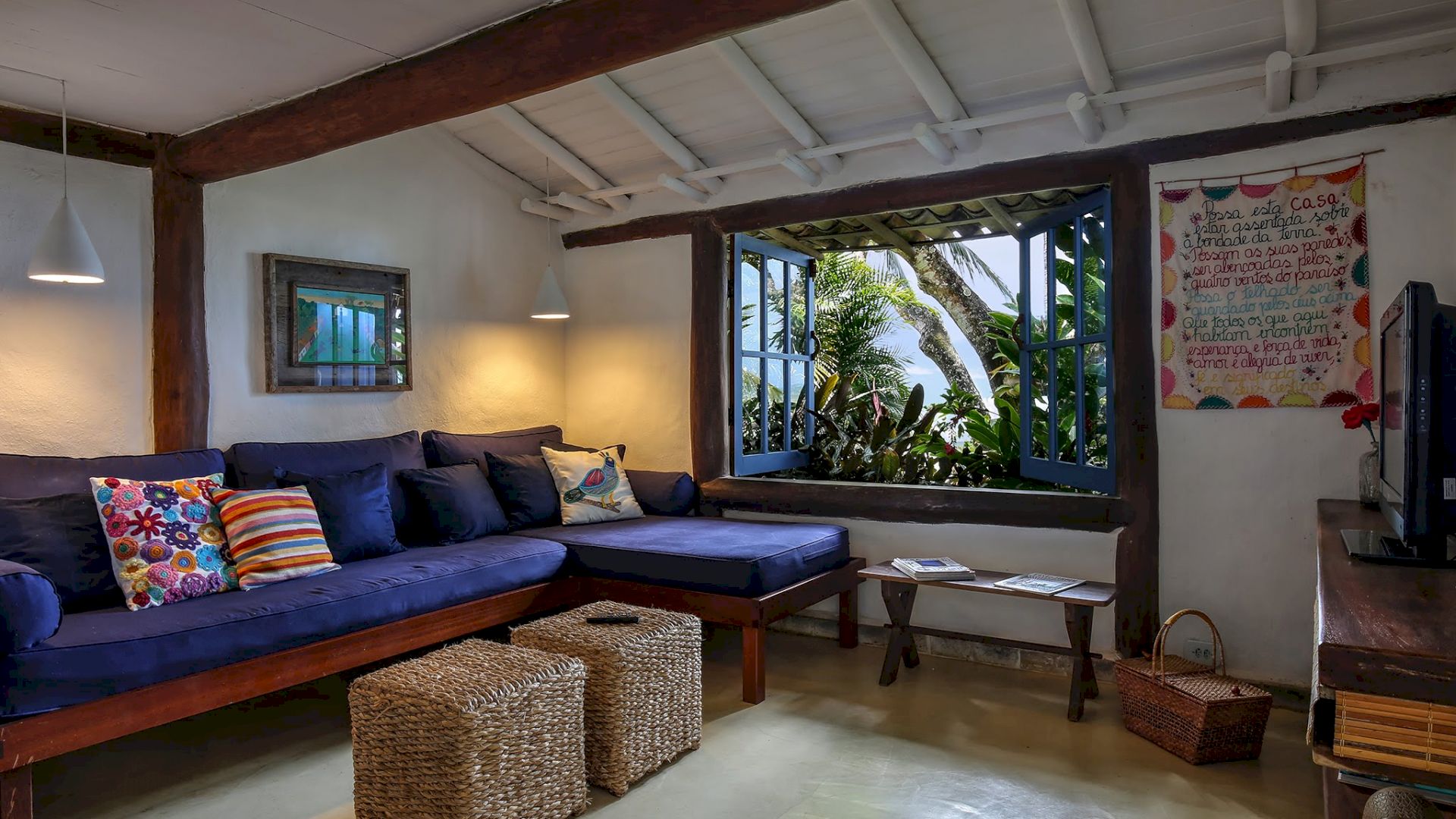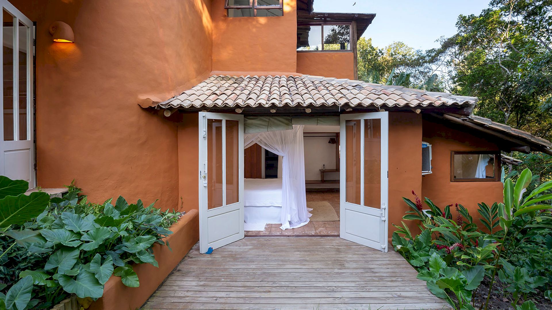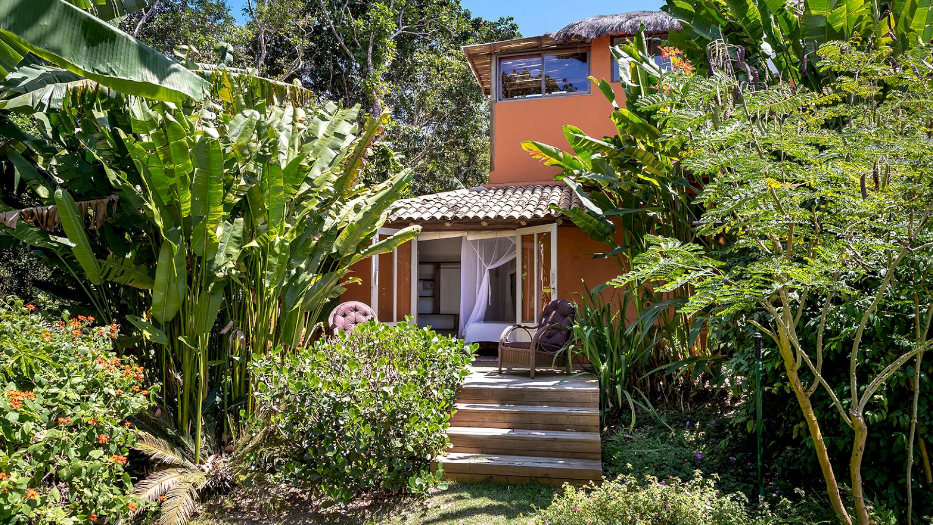 Na Casa Laranja, a Suíte Superior no andar superior oferece uma cama queen size, frigobar e armário, com um banheiro que proporciona uma vista encantadora. Outra suíte, também com vista para o mar, inclui uma cama queen size, mesa e uma varanda onde os hóspedes podem relaxar enquanto apreciam a paisagem. A terceira suíte nesta casa pode ser configurada com uma cama king size ou duas camas de solteiro, conforme a necessidade, e possui uma varanda com jardim, perfeita para quem busca tranquilidade.