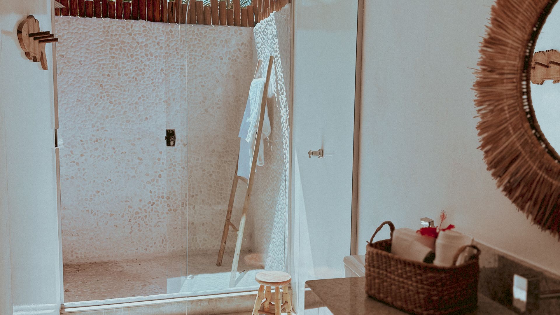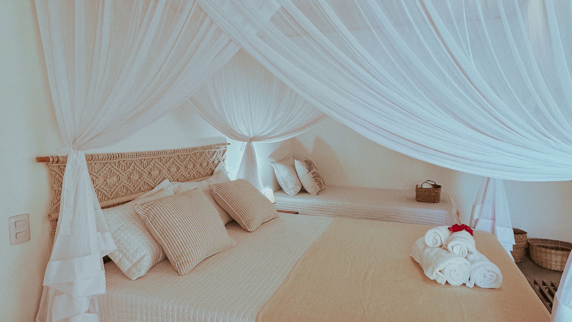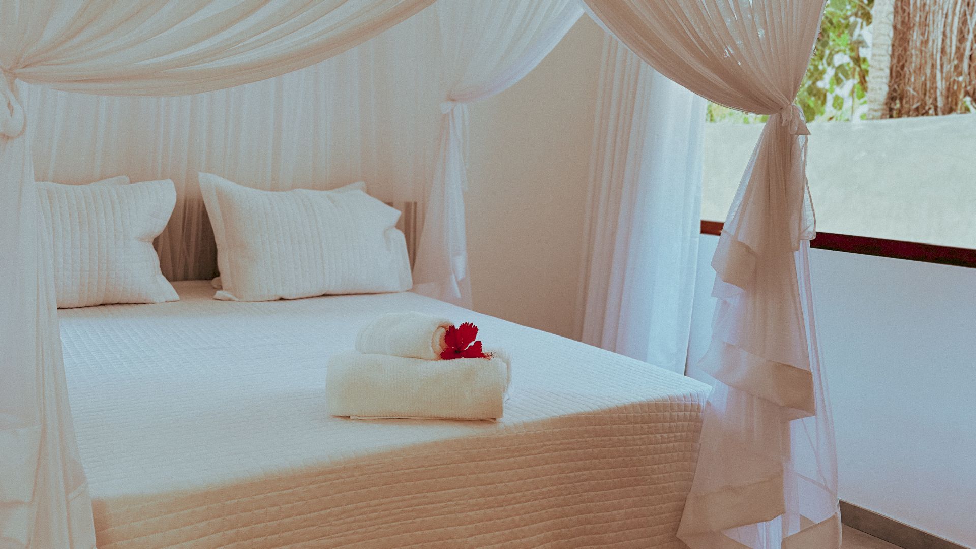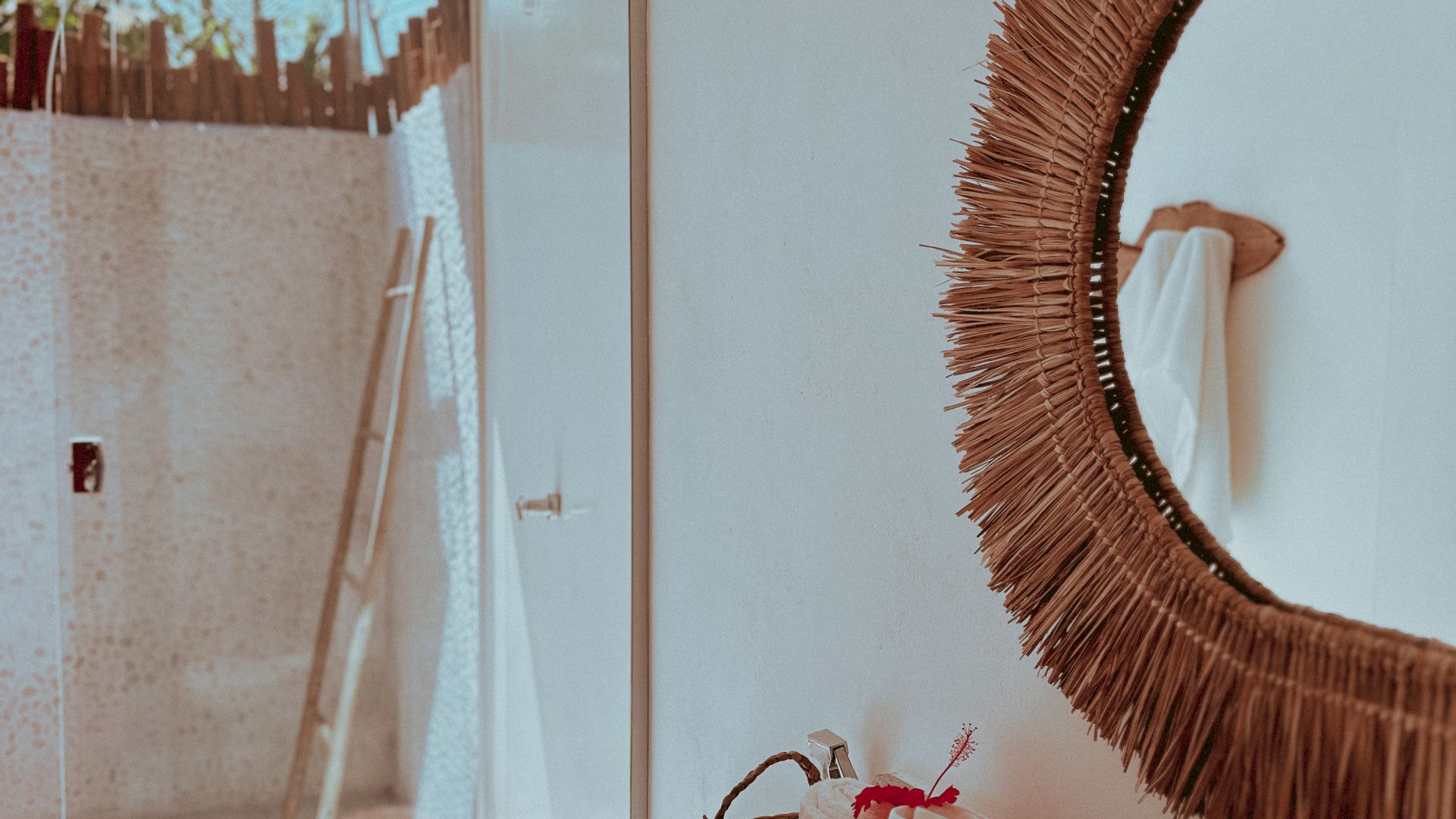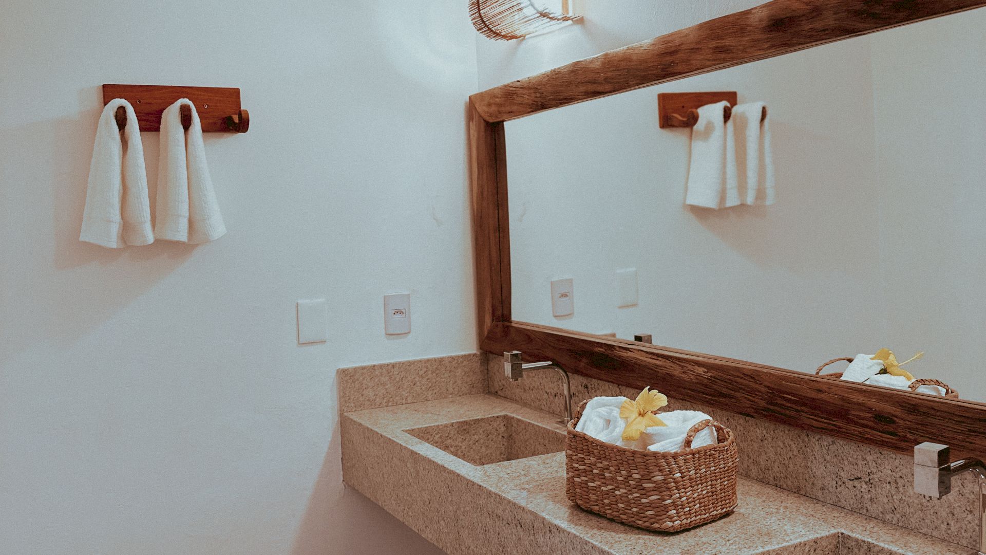 A Villa Coqueiral 10 se estende por um terreno de 1150 m², com uma área construída de 550 m², acomodando confortavelmente até 15 hóspedes. A casa dispõe de cinco suítes amplas, distribuídas entre o térreo e o pavimento superior. No térreo, encontram-se duas suítes, ambas equipadas com camas versáteis, sendo que uma delas oferece uma varanda privativa com vista para a mata, proporcionando um ambiente sereno e relaxante. No pavimento superior, as outras três suítes são igualmente impressionantes, com destaque para a suíte master, que conta com um charmoso banheiro com dois chuveiros, sendo um externo, coberto com seixos.