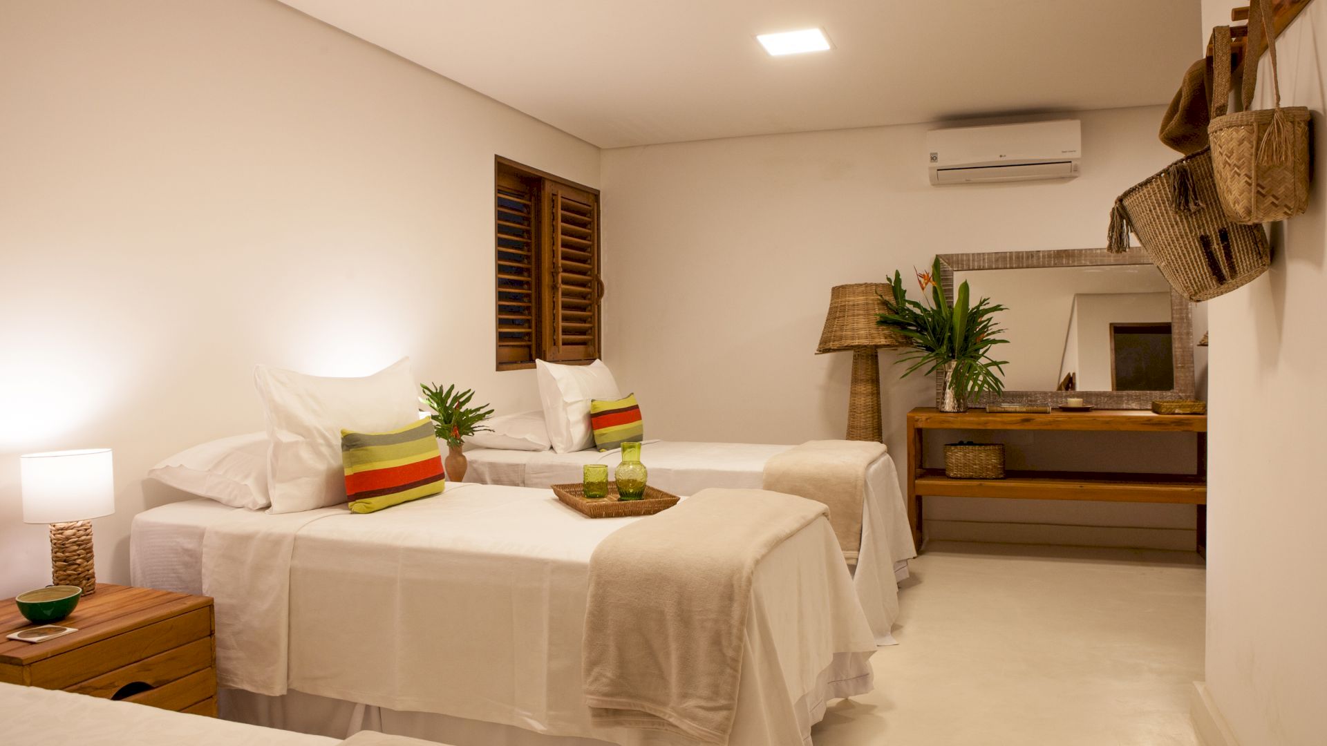 - 4 Suítes - uma cama de casal King size ou duas de solteiro, Banheiro, Ar condicionado