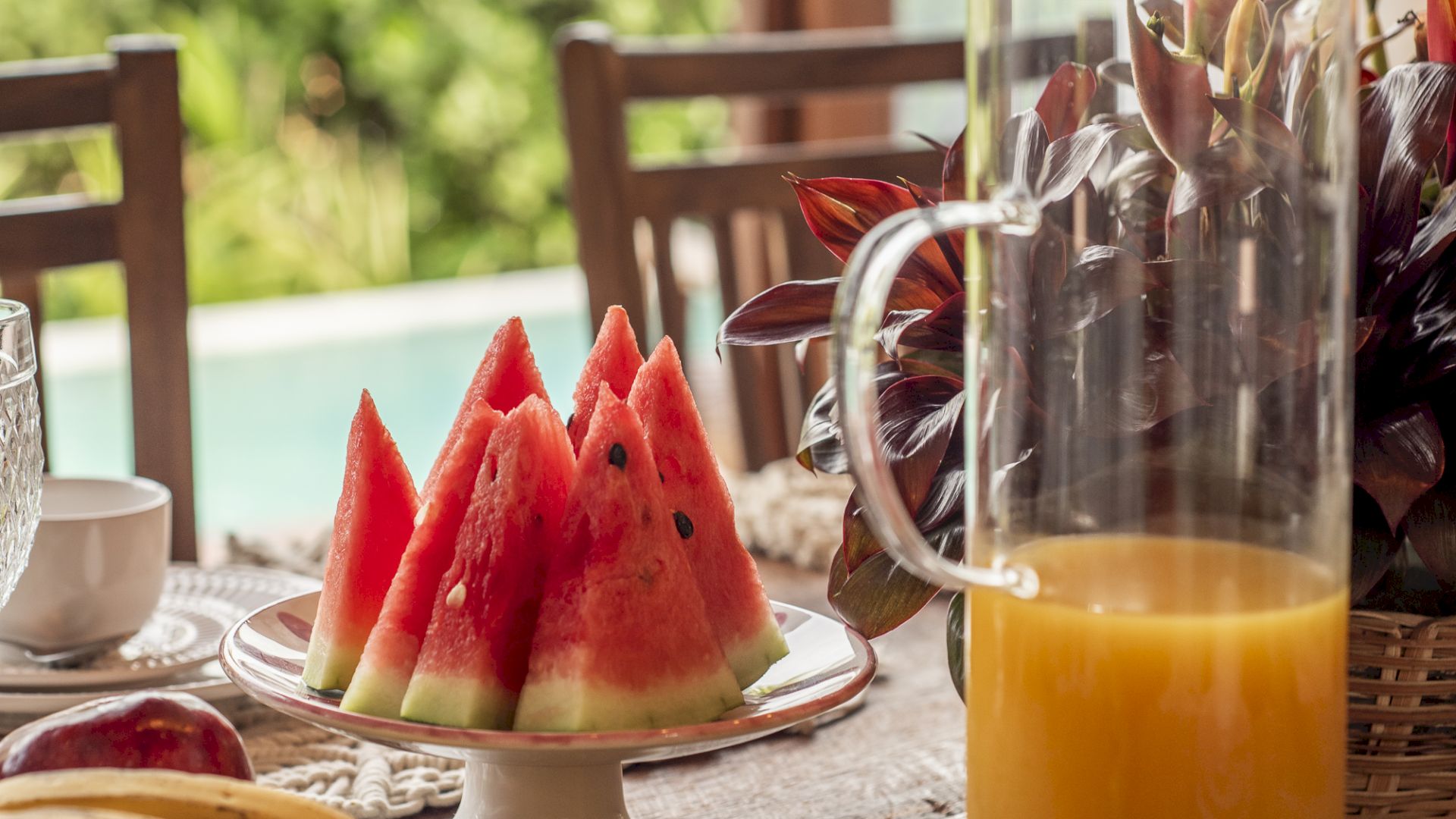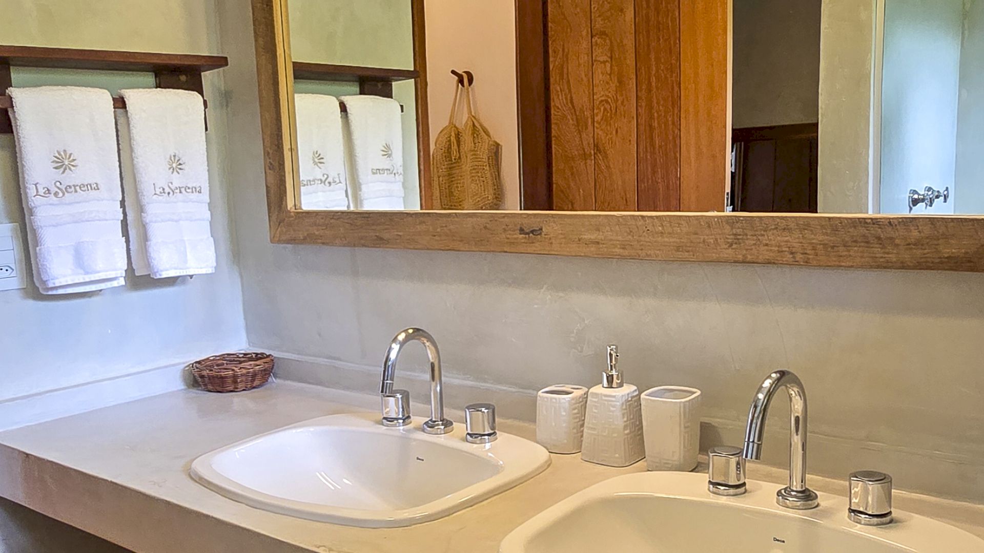 A propriedade conta com 4 suítes, acomodando confortavelmente até 8 pessoas. A configuração da casa foi pensada para garantir privacidade e integração: 3 suítes estão na casa principal, enquanto 1 suíte está localizada em um bangalô independente, ideal para hóspedes que buscam ainda mais tranquilidade.