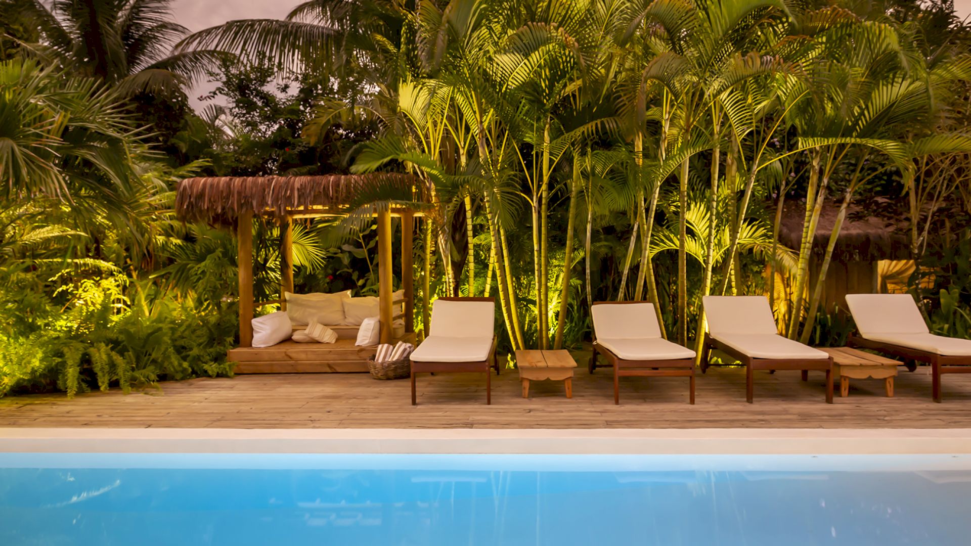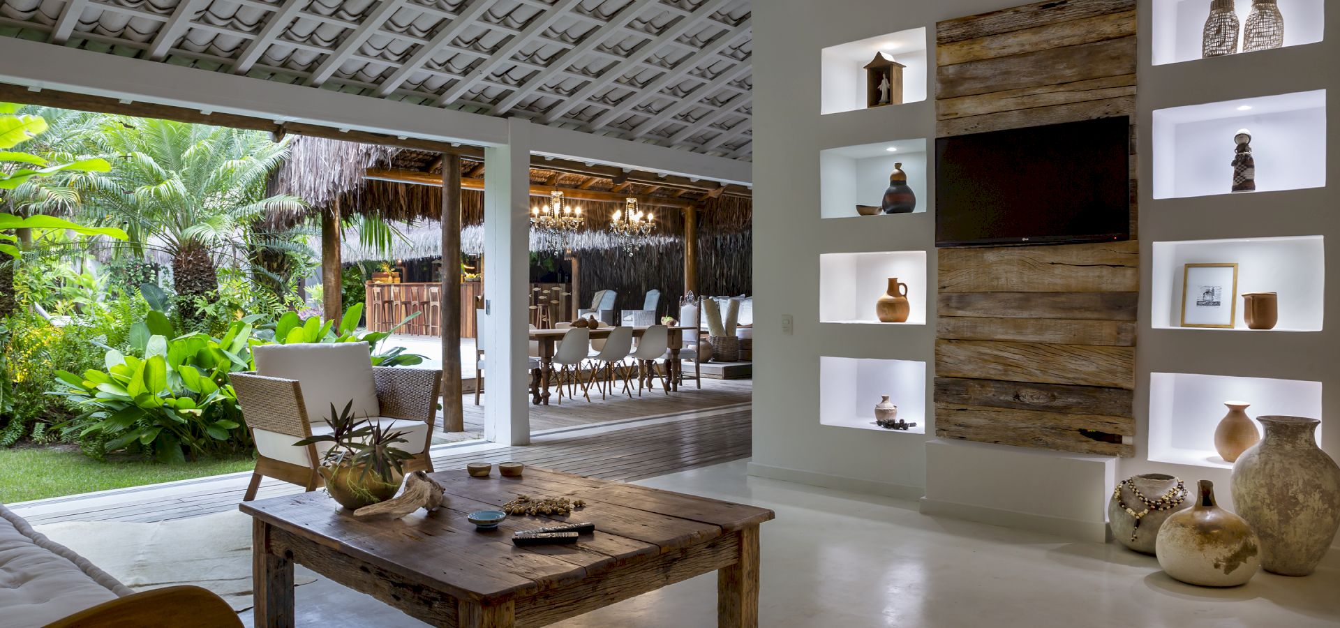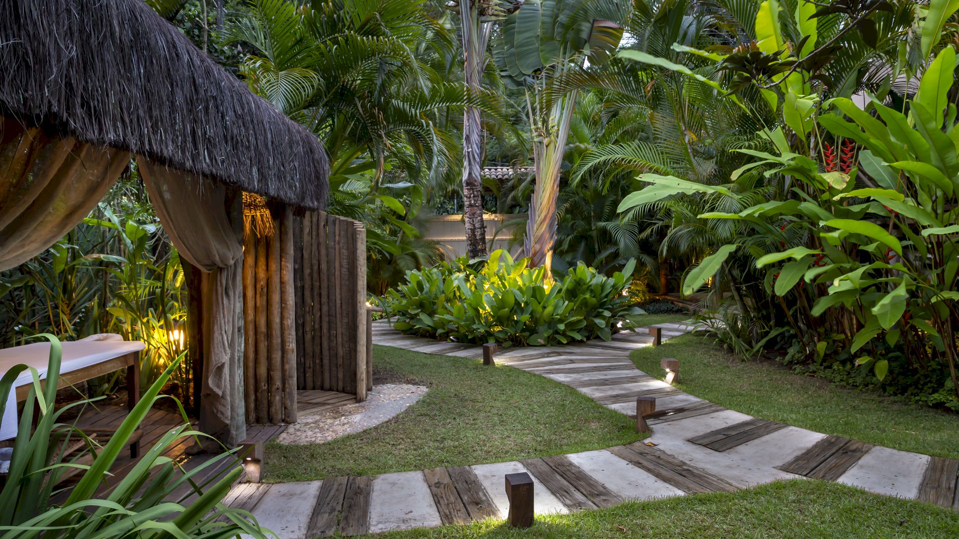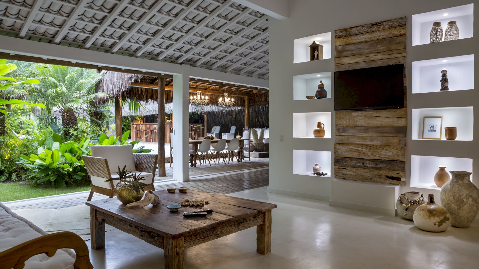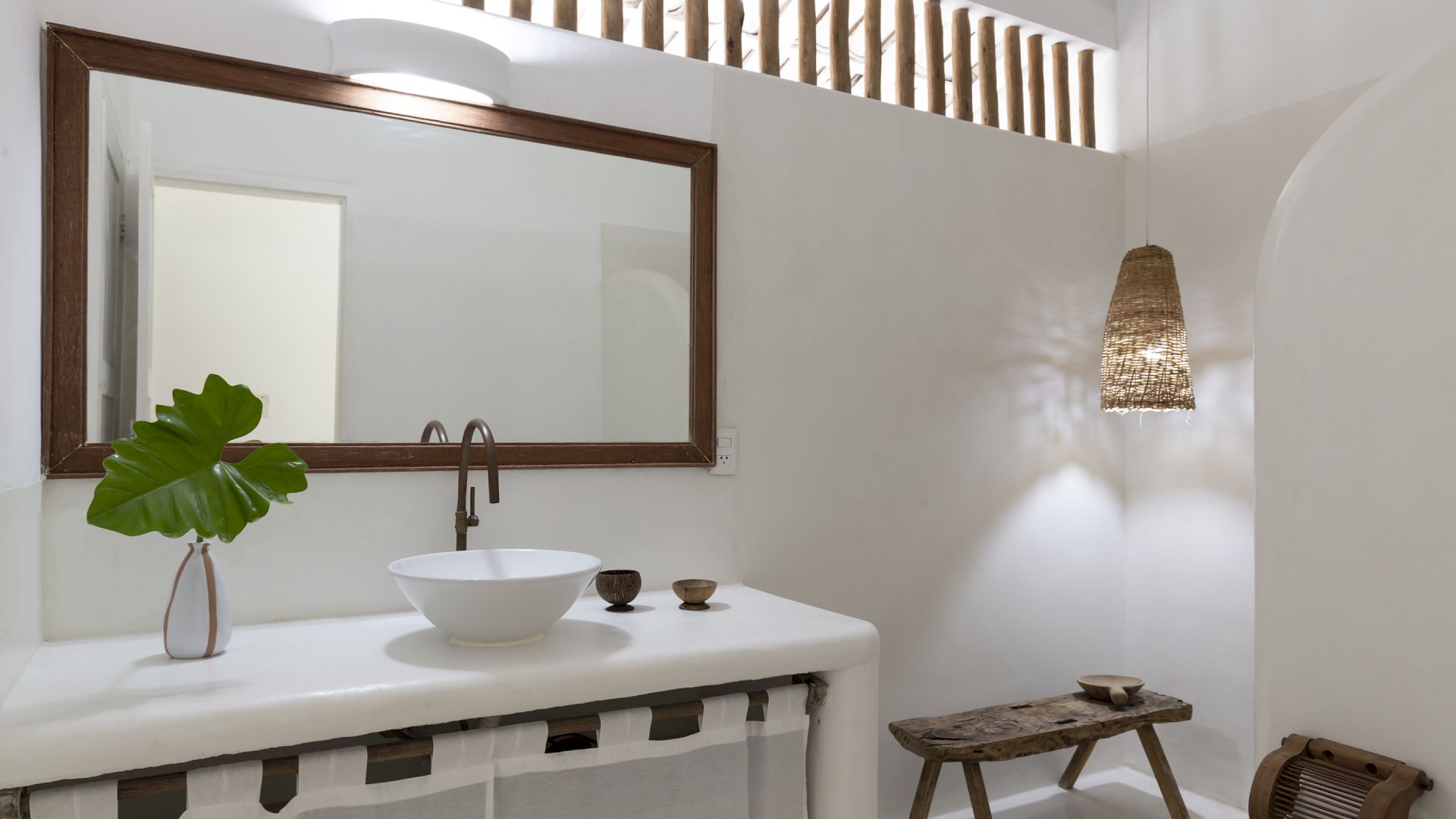 A casa é rodeada por um riquíssimo paisagismo tropical contendo 4 suítes que acomodam até 8 hóspedes confortavelmente. Todas as suítes são equipadas com cama Queen-size, ar condicionado, varanda individual com rede para descanso.